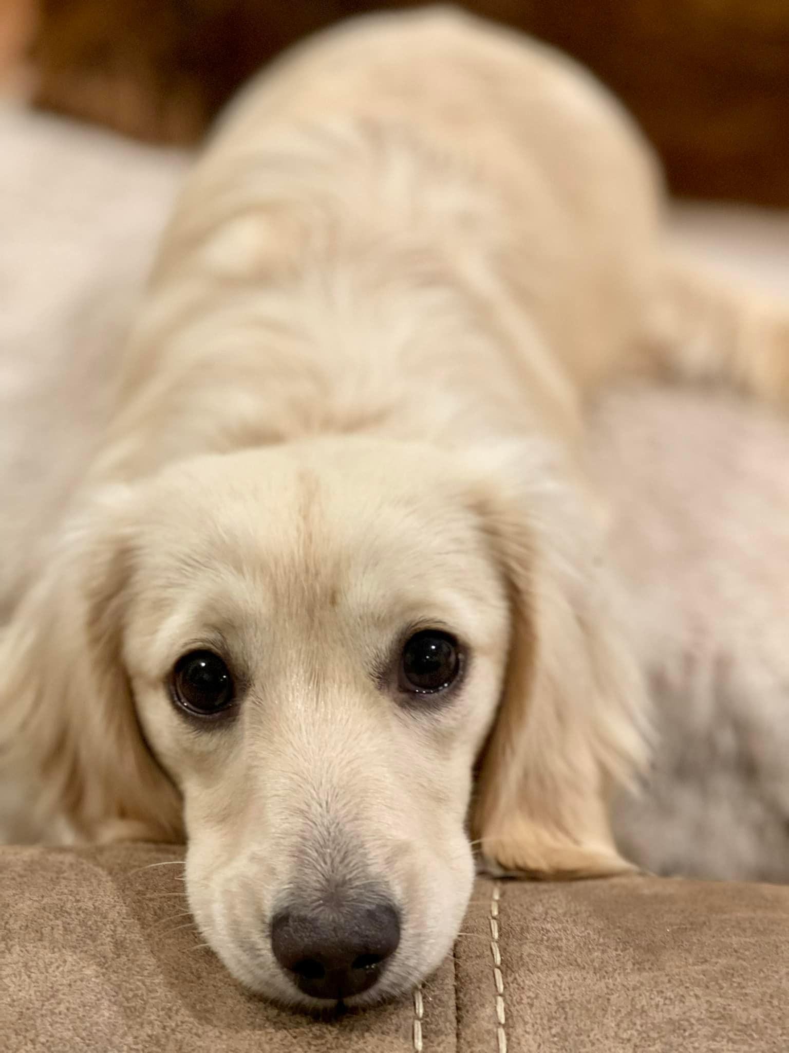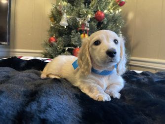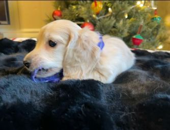 Teddy aka rubber bones, loves flopping back in his human mama's arms like a baby. He is quite the "lover boy" looking to sit with anyone that's chilling. He has such a great personality and just wants to please his people. Teddy is AKC & CKC registered. Our dachshunds are raised inside our home and are our family.