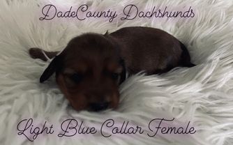 I'm J G., the breeder behind Dadecounty’s Dachshunds located in Cutler Bay, FL. We’re devoted to ensuring there are healthy Miniature Dachshund pups for others to enjoy and we do so by responsibly growing this incredible breed. We commit ourselves towards preparing each one of our puppies to thrive in their new homes, and we enjoy working with their new families so that they can raise their beloved companions with confidence! We offer our puppies primarily to pet homes. If you are a breeder looking to purchase one of our babies, please reach out so we can discuss your goals and your own program to see if you are the right fit to purchase one of our puppies.
