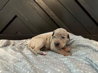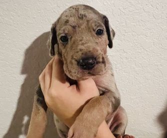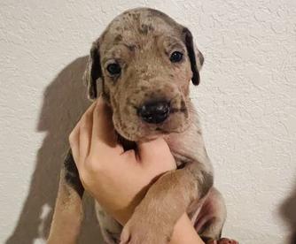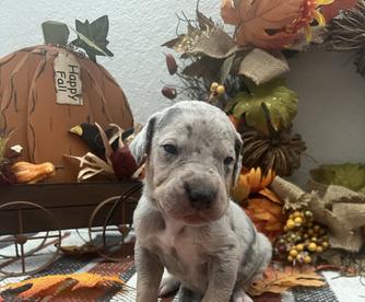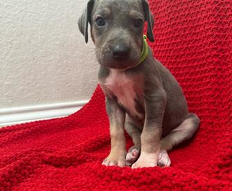 I'm Brittany B., the breeder behind Dahlias Danes located in San Antonio, TX. We are a family-owned Great Dane breeder located in San Antonio, Texas. We have owned Great Danes for 10 years. We take special care ensuring our pups go to a loving and safe home. If you are looking for a good temperament, healthy, and well socialized standard Great Dane, you are in the right place. Each of our puppies are AKC registered as pets. Full breeding rights are available to approved breeding homes. Each puppy is veterinarian vaccinated, dewormed, and health checked before leaving our care!