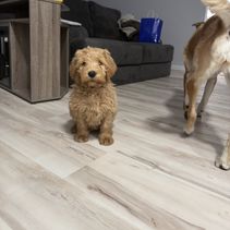 I got my first double doodle from Kyle and Rachel Dailers. They are very responsive to my questions and provides information on the pups. I was able to meet the pups and see his progress until he was ready to come home.