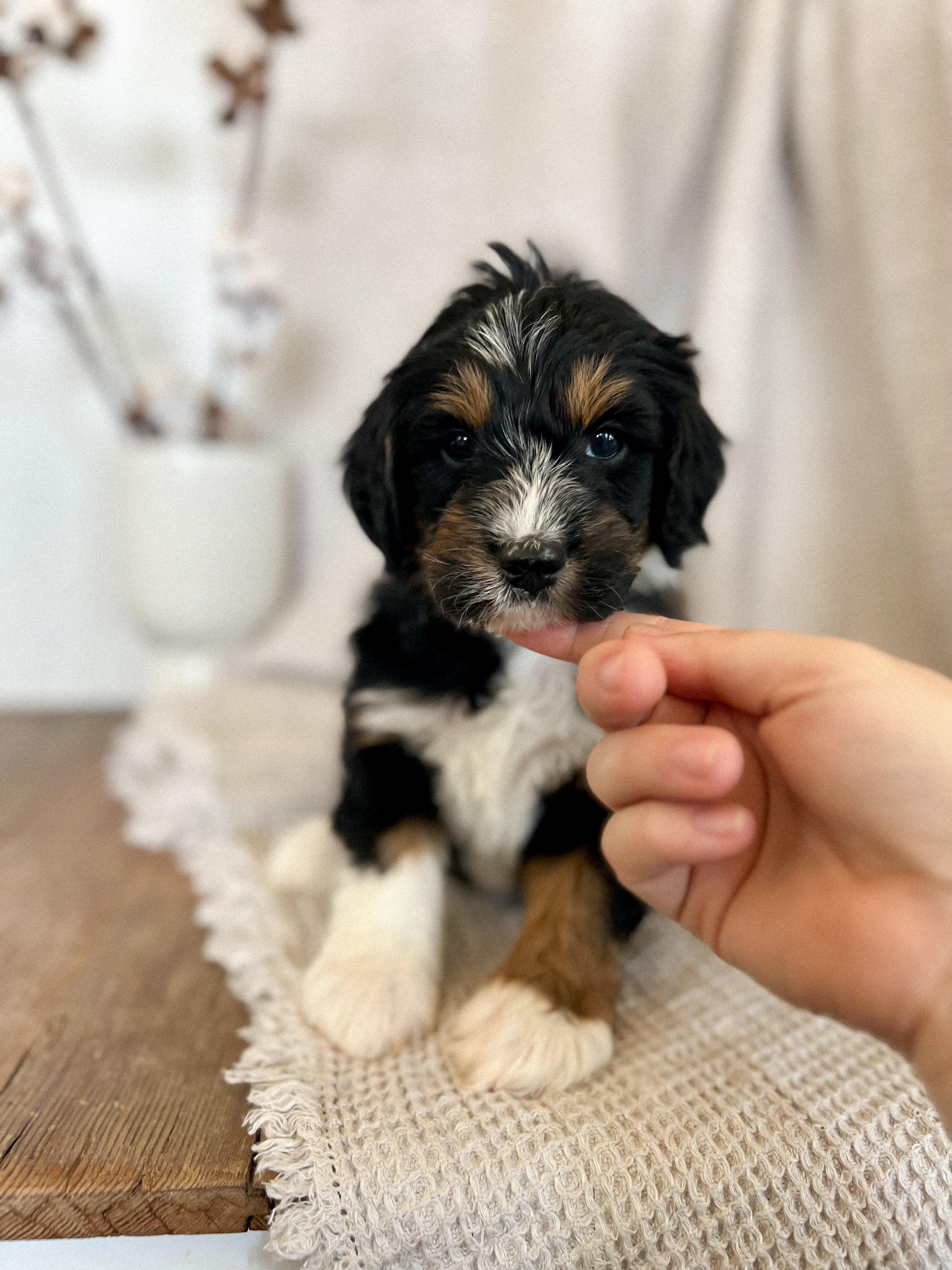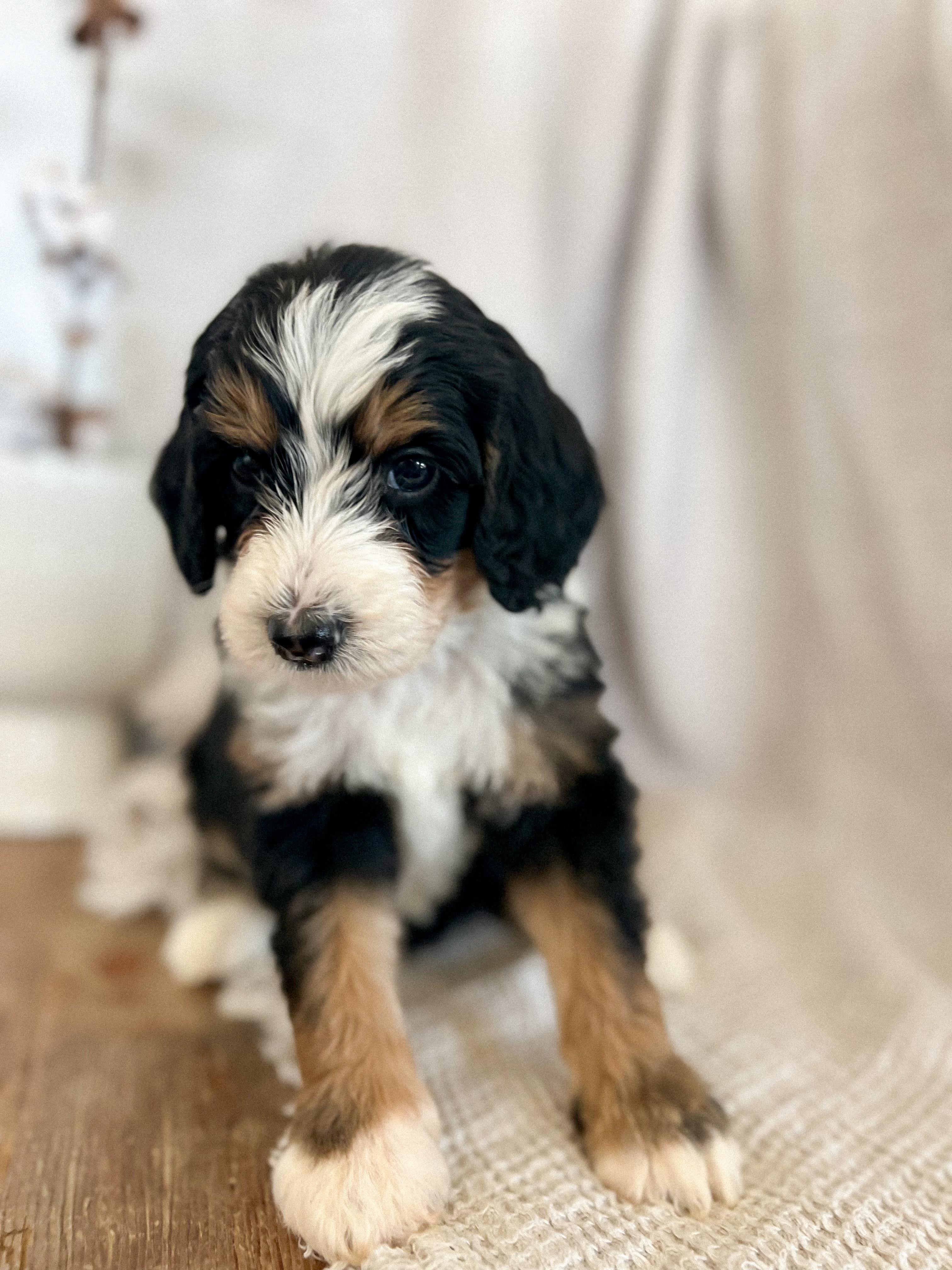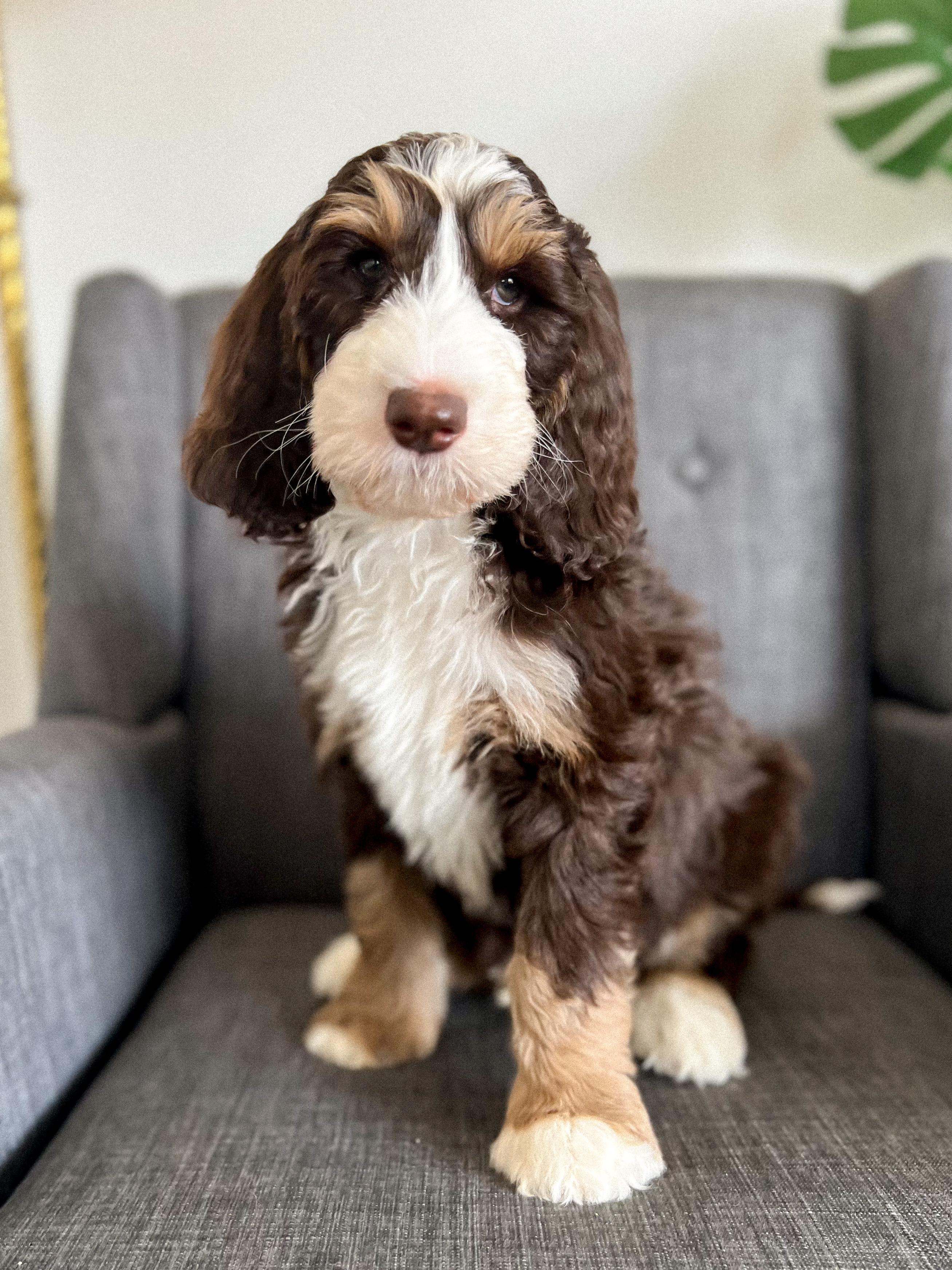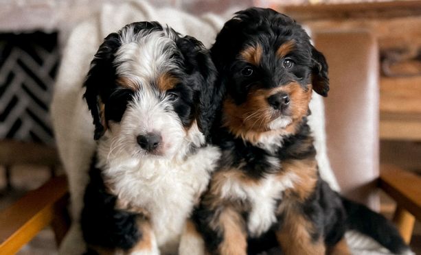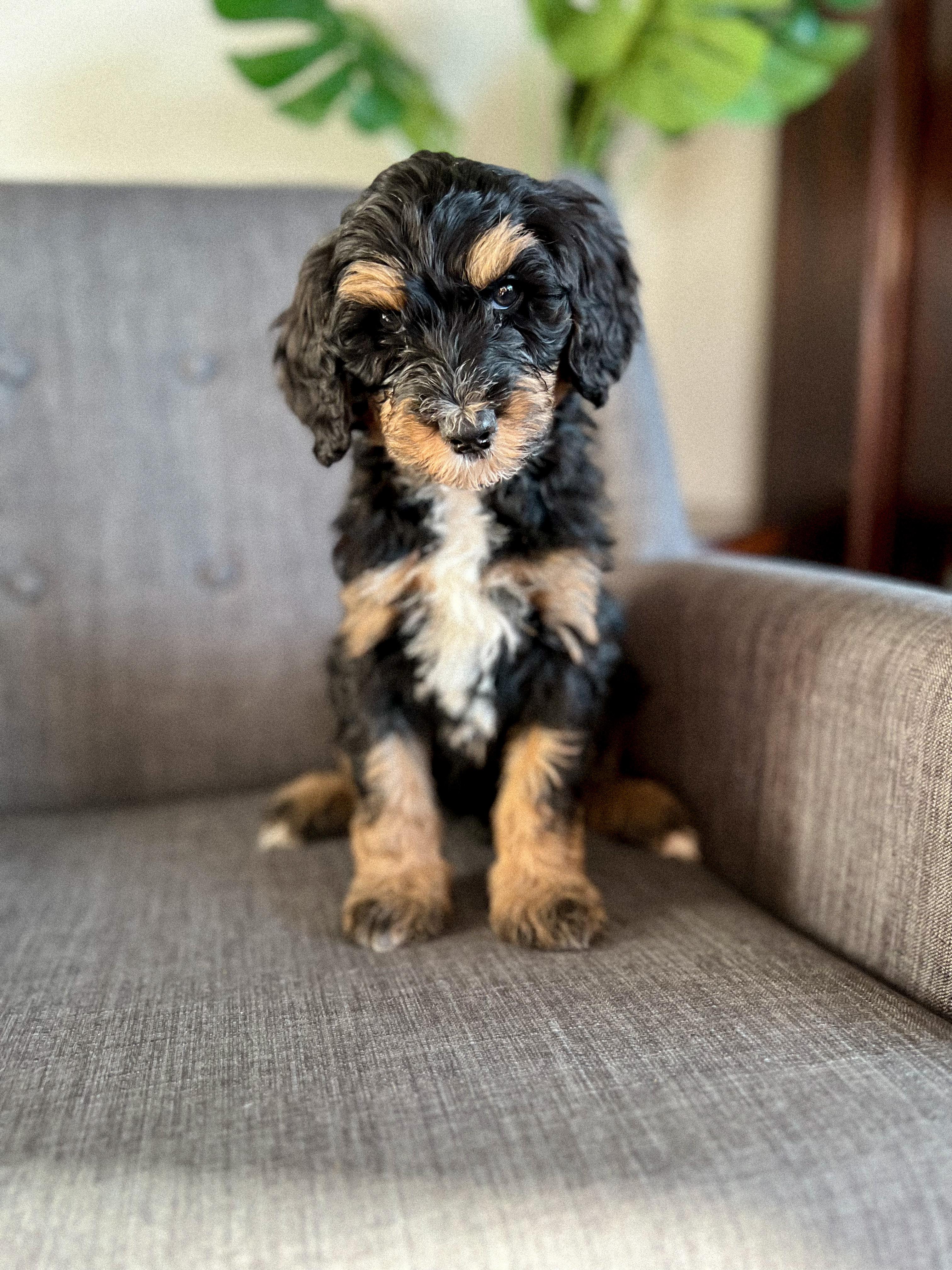 Our Bernedoodle puppies include mini and medium sizes. Goldendoodle puppies include miniature and medium sizes. Sizes will vary depending on the parent dogs.