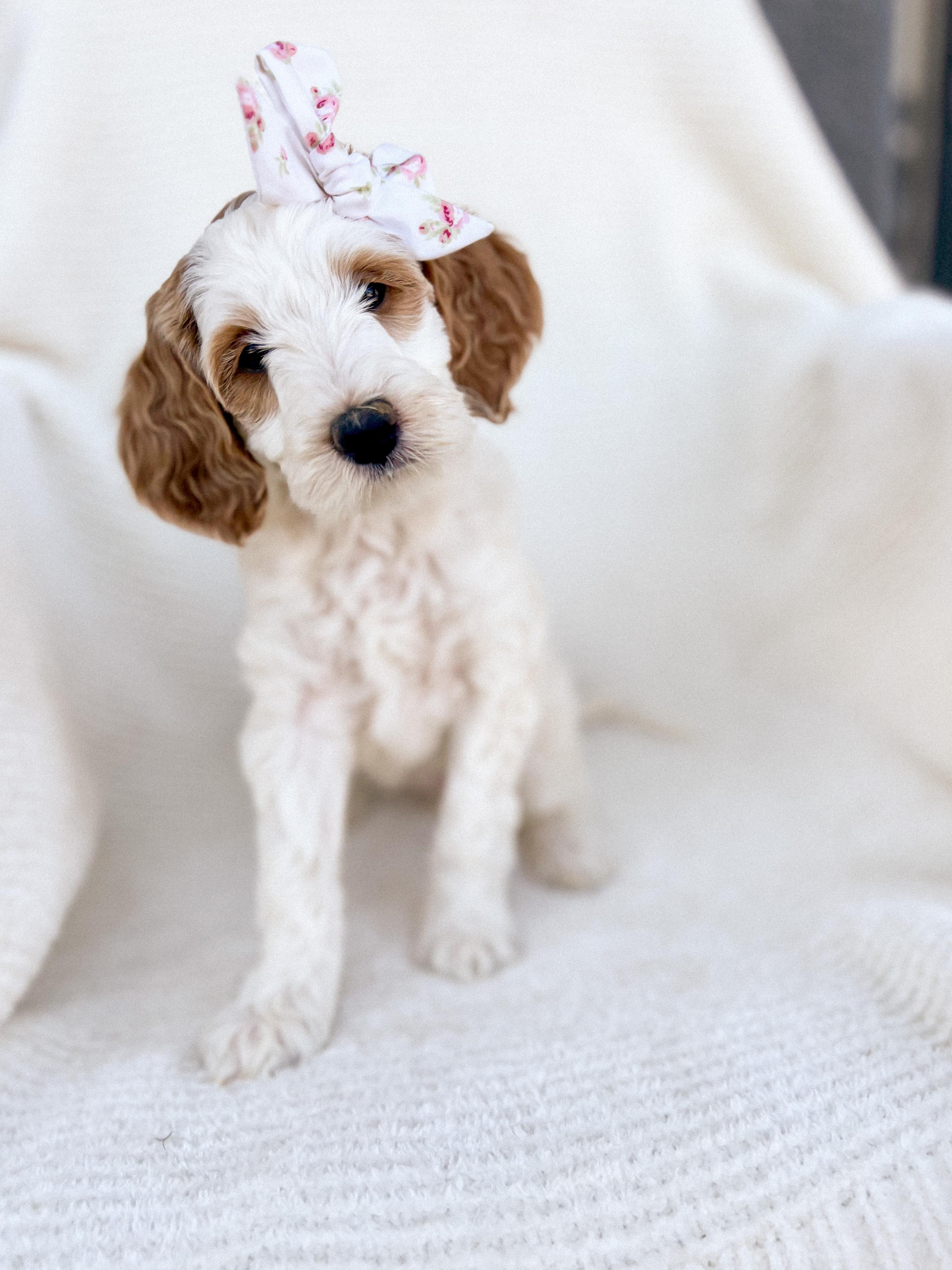Ingrid Mabel is a female Goldendoodle. Carefully selected as a great representative of her breed, Sarah decided to make her part of their program. Sarah has passed Good Dog’s screening process, which involved a review of their breeding practices, environment, and the mental and physical health of their dogs.