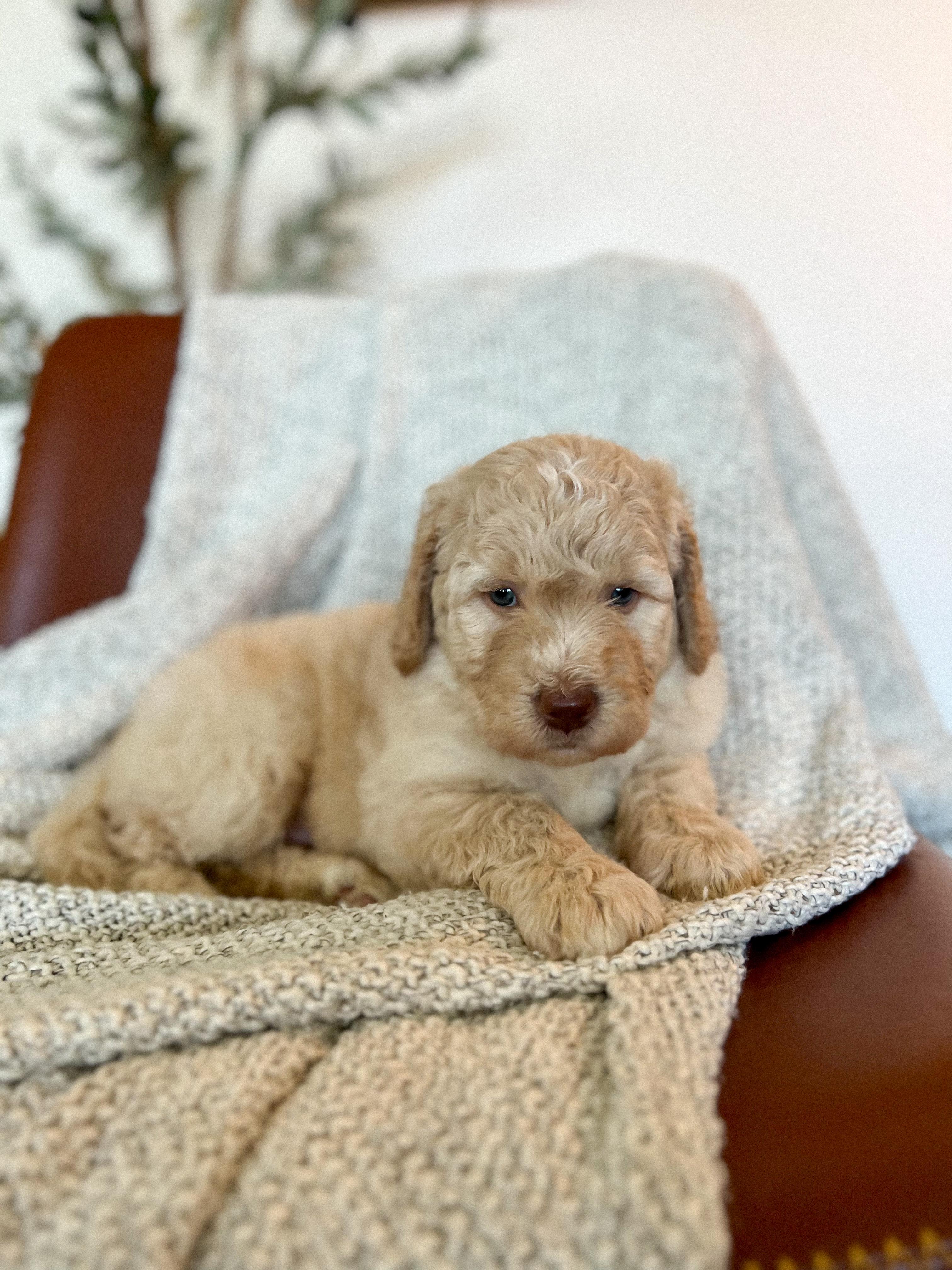 Heidi Lily is a daughter of our beloved foundation mama, Freya. She is a 24 pound goldendoodle is very smart and has medium energy, loves her humans and other kids and dogs. Her coat is so think and plush, and has such sweet eyes. She’s always been on the lower energy and calm side so, while she does get excited and play when the vibe calls for it, she can easily calm and settle and just snuggle on the couch with her people. She just is simply sweet and loving and just wants to be by her humans' sides :)