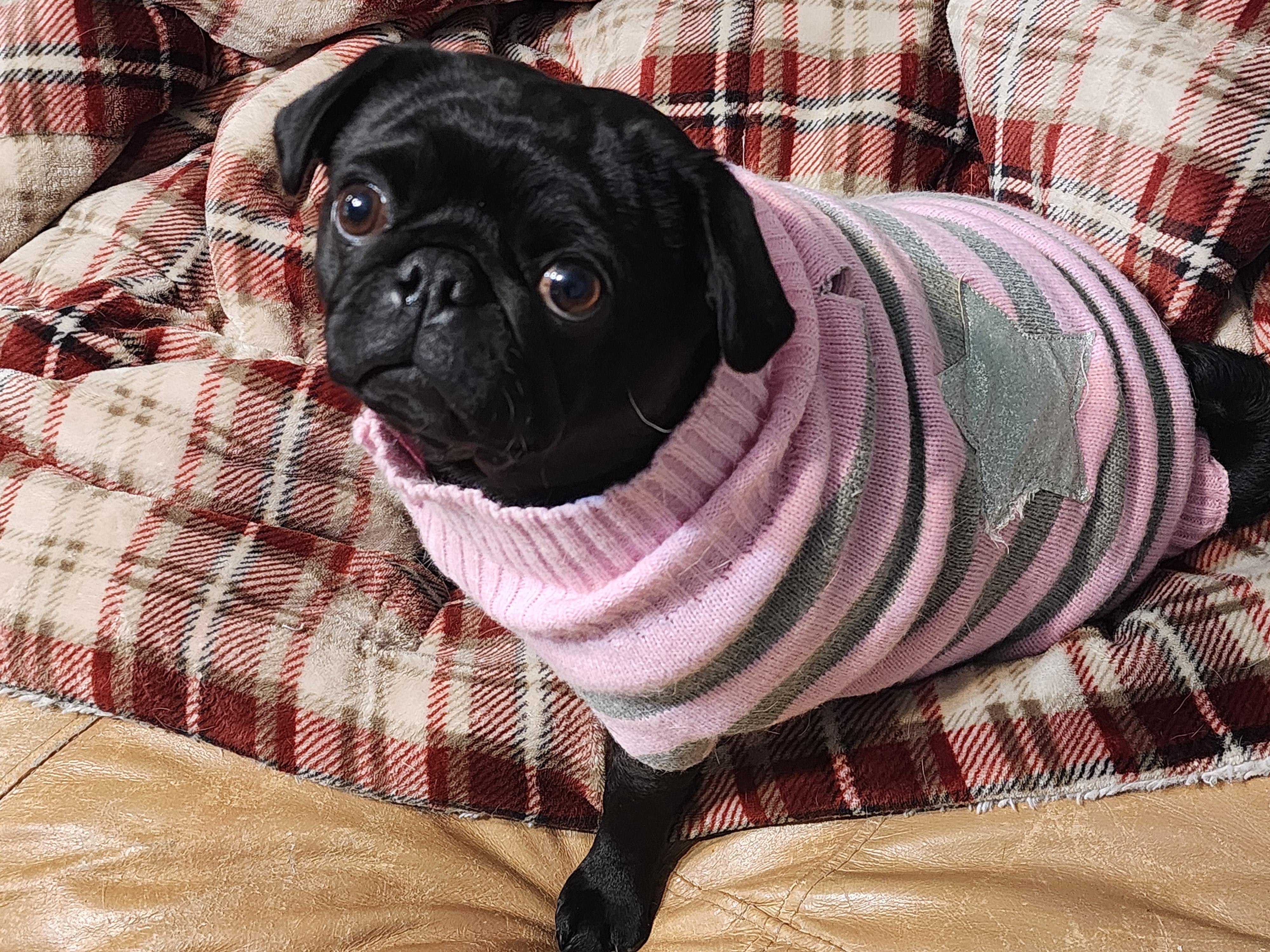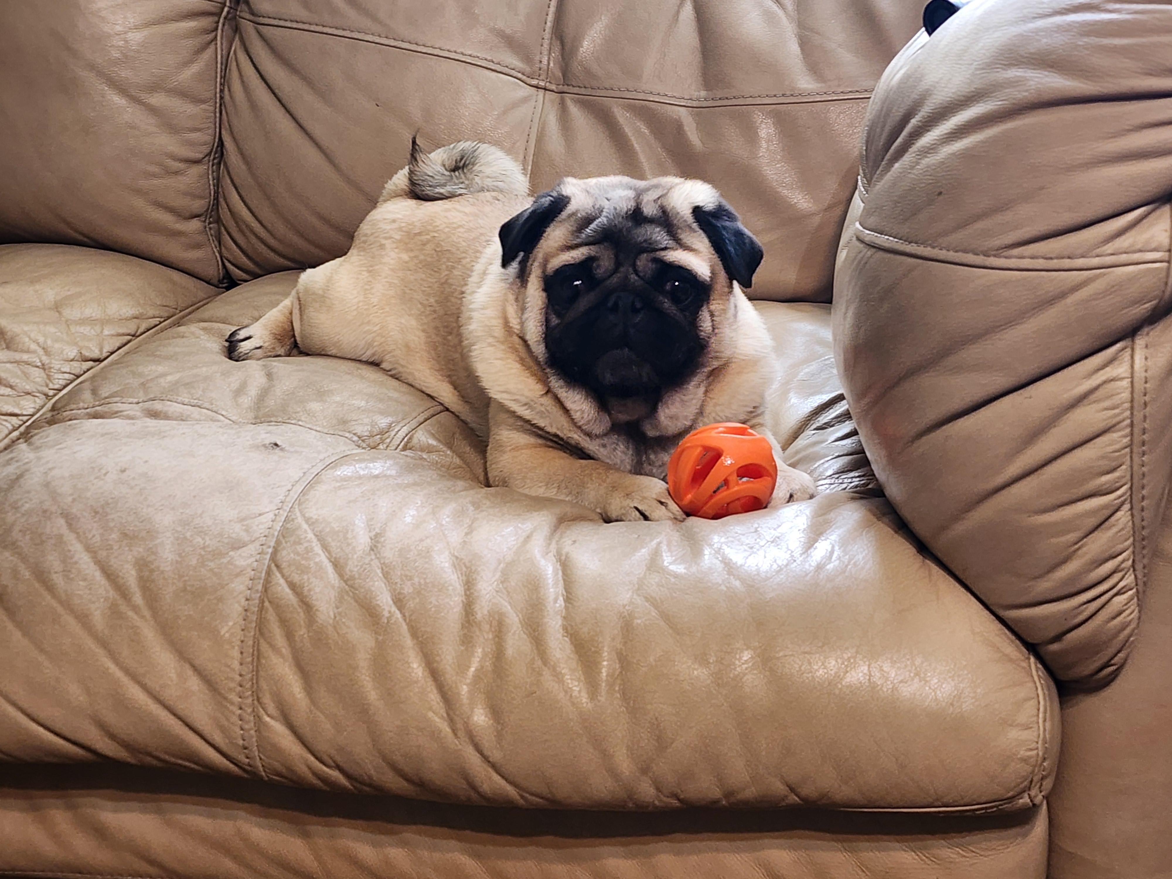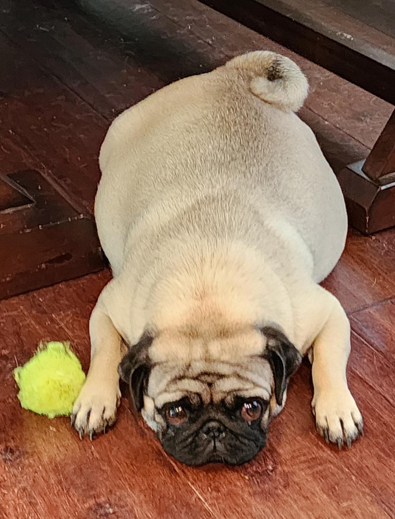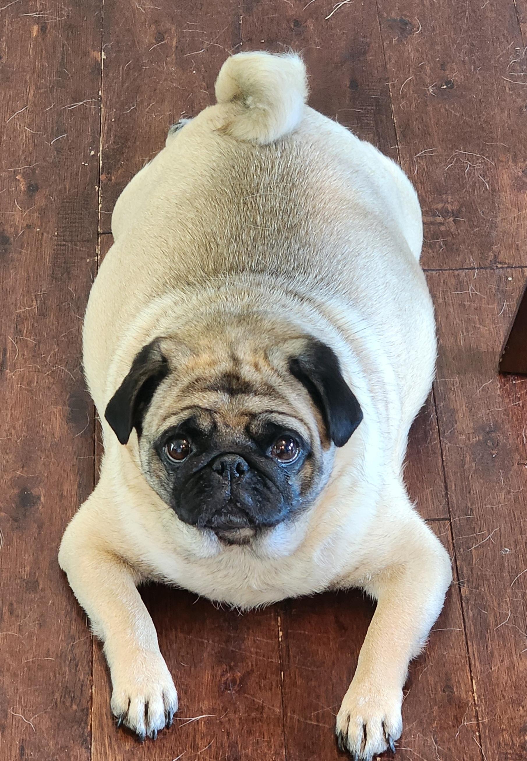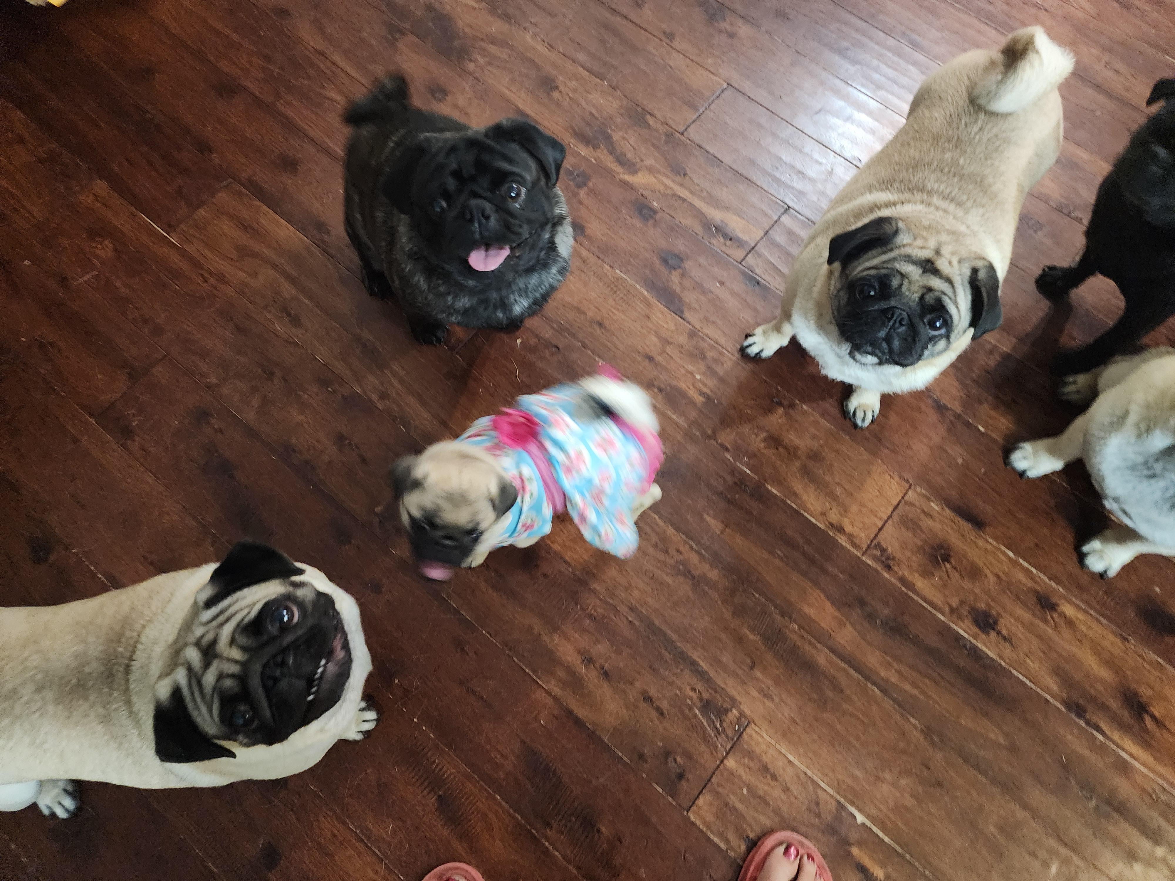 Rosie goes to the beat of her own drum and it makes her a fun girl! She is silly and out going as pugs usually are.