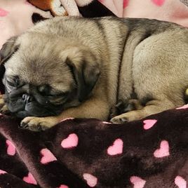 Daisy was amazing to work with! She is truly a breeder who cares about the health and wellbeing of her dogs. Her pugs are beautiful! We adopted a black male pug. Daisy has been responsive throughout the selection process , adoption, and follow up.