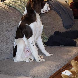 Freckles is a female English Springer Spaniel almost 12 years old. Carefully selected as a great representative of her breed, Janice & Joel decided to make her part of their program. Janice & Joel has passed Good Dog’s screening process, which involved a review of their breeding practices, environment, and the mental and physical health of their dogs.