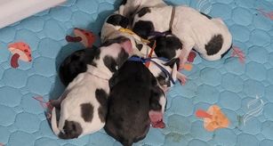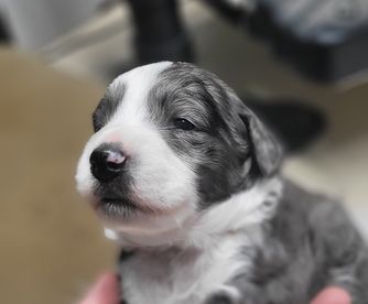 Our puppies include black and white, phantom, and blue merle. Colors will vary depending on the parent dogs.