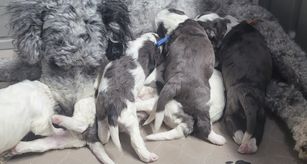 I'm Stefanie T., the breeder behind Daisy's Doodles located in Wallace, MI. Located in Upper Michigan yet 20 miles from Marinette , Wi border. This is my 1st time breeding my blue merle Daisy. She is so calm, gentle, affectionate, loving mini bernedoodle. I have an awesome mentor helping me. In the past I have breed and raised registered nigerian dwarf goats. I have both parents that are a part of our family onsite. We love to go camping , pontooning, and just a car ride anywhere. We have had Embark dna testing on Duke and Wisdom Panel testing on Daisy. We love them both.