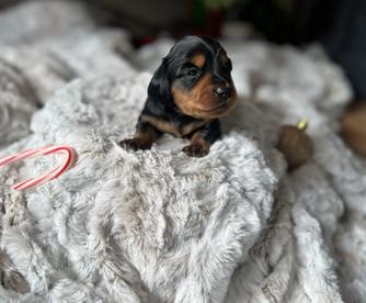Hannah was so great to work with! You can tell her and her family really cared about our puppy and took excellent care of him before we picked him up. She made the pick up process so easy and even though we were a bit late on pick up day (traffic) she still spent so much time with us just talking about the litter and about our puppies personality and sharing stories about the breed and about her experience breeding mini dachshunds. If Rocco wasn't our second dachshund we would absolutely, without a doubt, consider getting another puppy from Hannah!