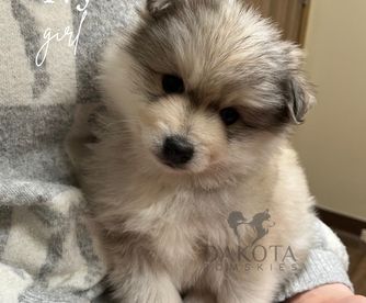Dakota Pomskies was quick to respond and very helpful throughout the process. They were also kind enough to drive our pup closer to Minnesota for pick up. We absolutely adore Haku and would definately recommend them as a breeder!