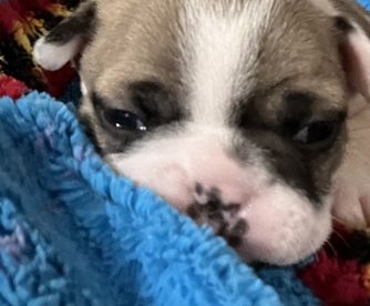 This little lady is just that. She is small and full of love. She’s been the best mom to all her litters and has that unbeatable frenchie personality. She loves to play fetch and keep away with your blanket.