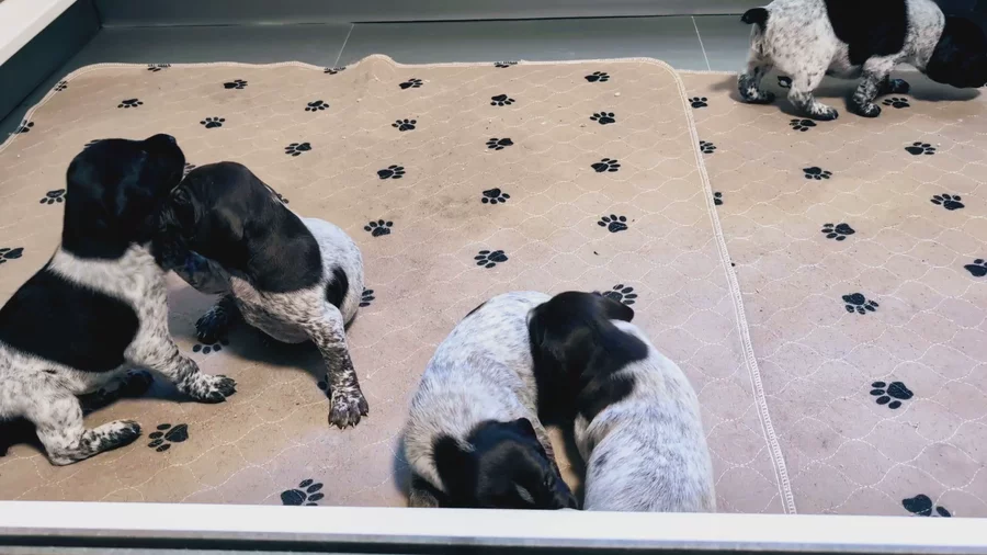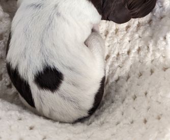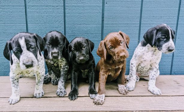Our puppies include white and liver, liver roan, liver and white, liver, black roan, black and white, and black. Colors will vary depending on the parent dogs.