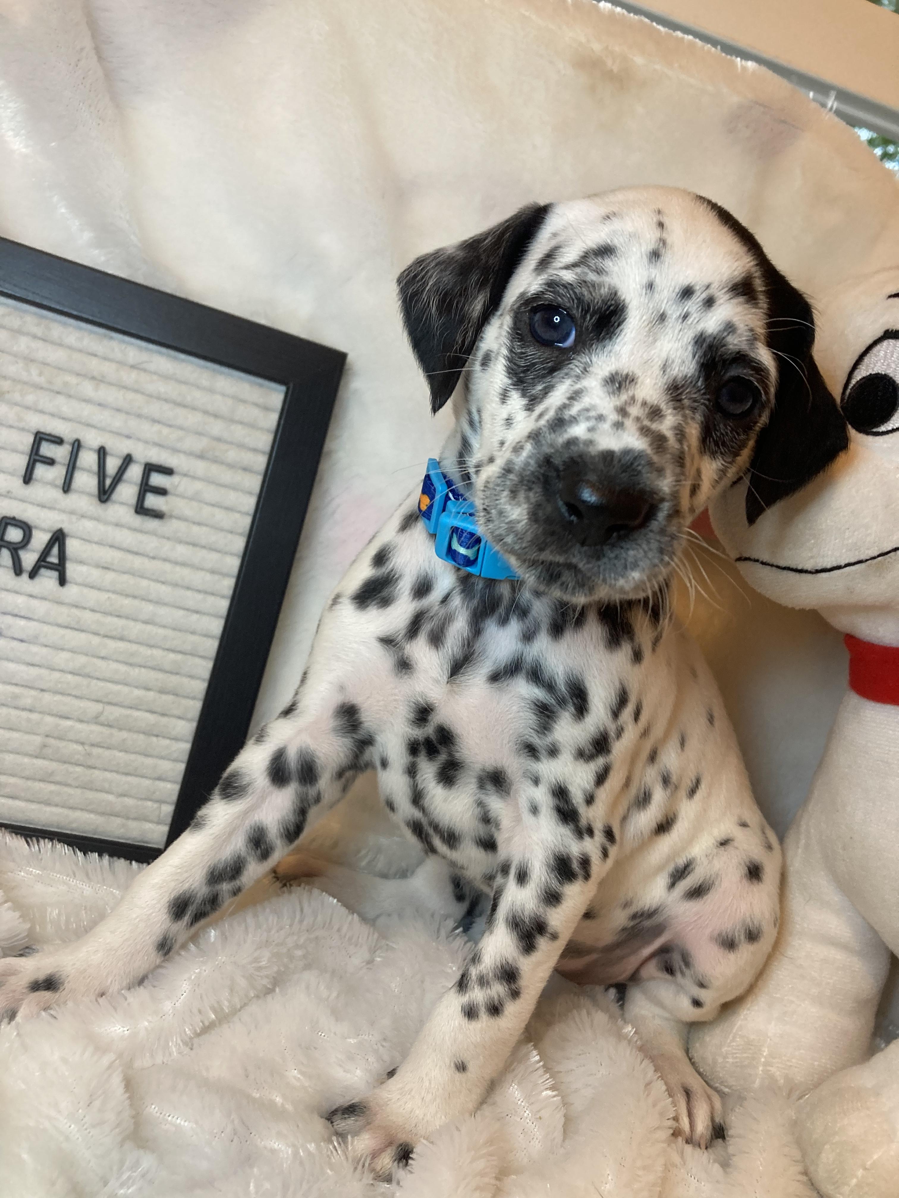 Getting to know Augist was such a wonderful experience! Through the entire process she was not only responsive, but took initiative to often share updates, photos and videos of our puppy. There was never any doubt that our puppy was in the best hands and getting the very best care. Augist was flexible and very accommodating when it came to making travel plans to pick our girl up and she is a wealth of knowledge that she shared happily and freely all things Dalmatian! Thank you, Augist - You're the best!