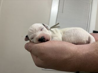 “Each puppy comes with a AKC registration, ACA Certified Pedigree, AKC Canine Partners Registration, AKC Reunite Microchip, BAER hearing test certified through OFA, verified Veterinarian heath check, first set of shots. Puppies will have received deworming and flea treatment as a standard precaution, they will also receive a starter kit! $300Non-Refundable Deposit!”