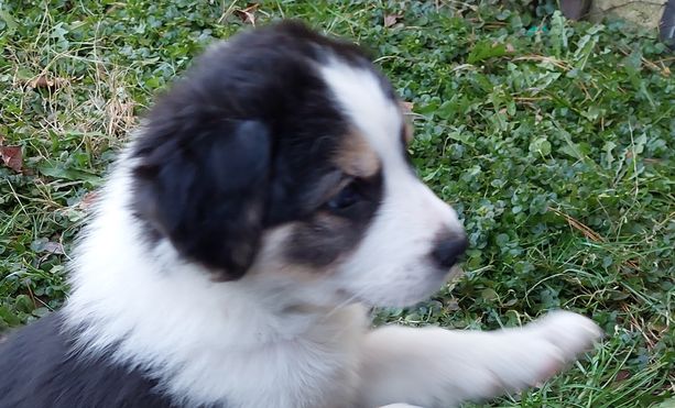 Our puppies include tri-colored, sable and white, and black and white. Colors will vary depending on the parent dogs.