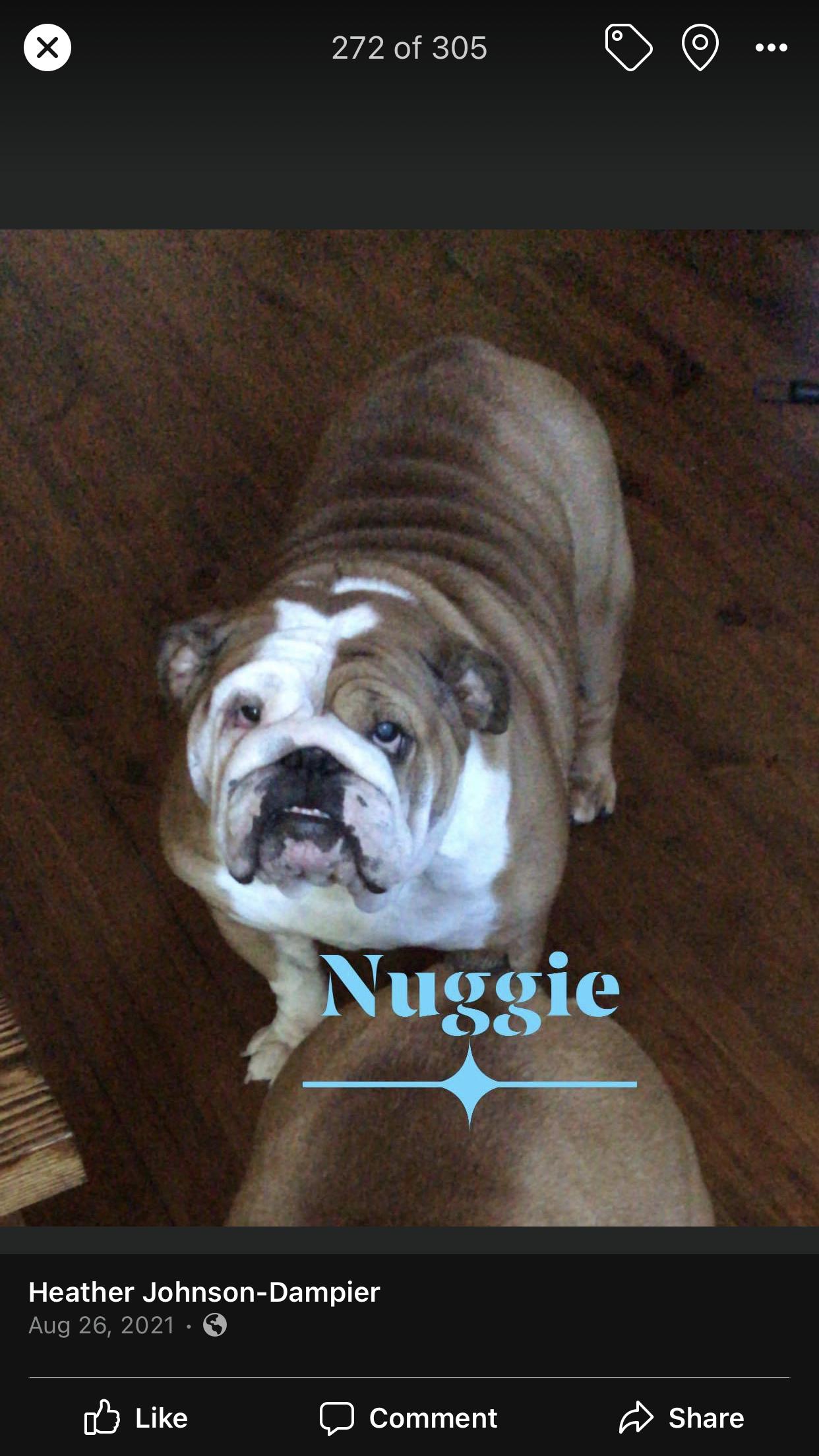 Nugget is a female Bulldog. Carefully selected as a great representative of her breed, Heather decided to make her part of their program. Heather has passed Good Dog’s screening process, which involved a review of their breeding practices, environment, and the mental and physical health of their dogs.
