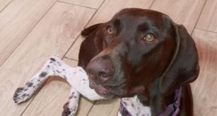 MARVEL is a male German Shorthaired Pointer. Carefully selected as a great representative of his breed, Cheryl decided to make him part of their program. Cheryl has passed Good Dog’s screening process, which involved a review of their breeding practices, environment, and the mental and physical health of their dogs.