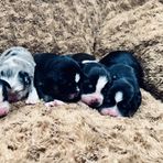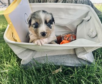 Our puppies include red merle, blue merle, black tri-color, and red tri-color. Colors will vary depending on the parent dogs.