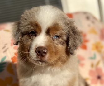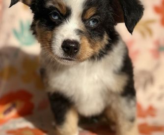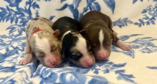 Our puppies include blue merle, black tri, red tri, and red merle. Colors will vary depending on the parent dogs.