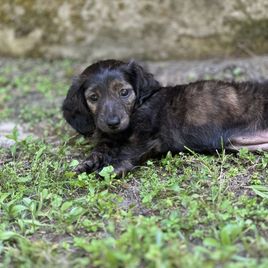 We raise both long and short hair dachshunds. We have a variety of colors and patterns. We are offering brindle, piebald and dapples. We have cream, red, chocolate, black & tan, and blue cream. Our puppies are sold as pet only, limited AKC on a spay/neuter contract.