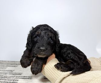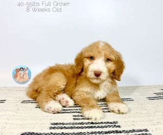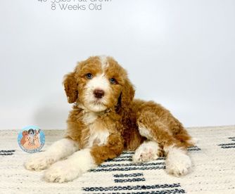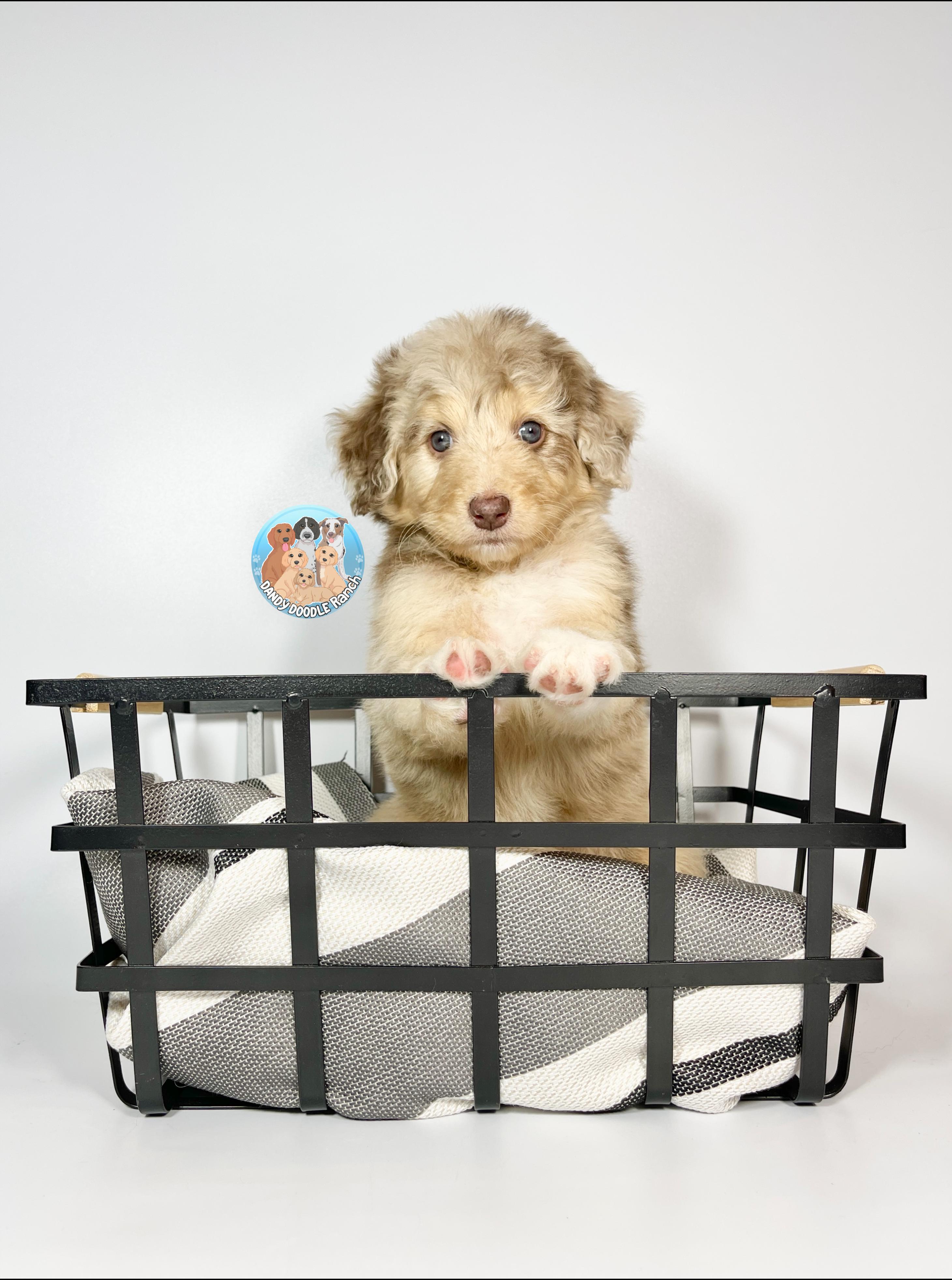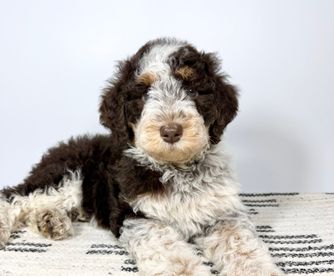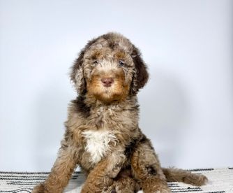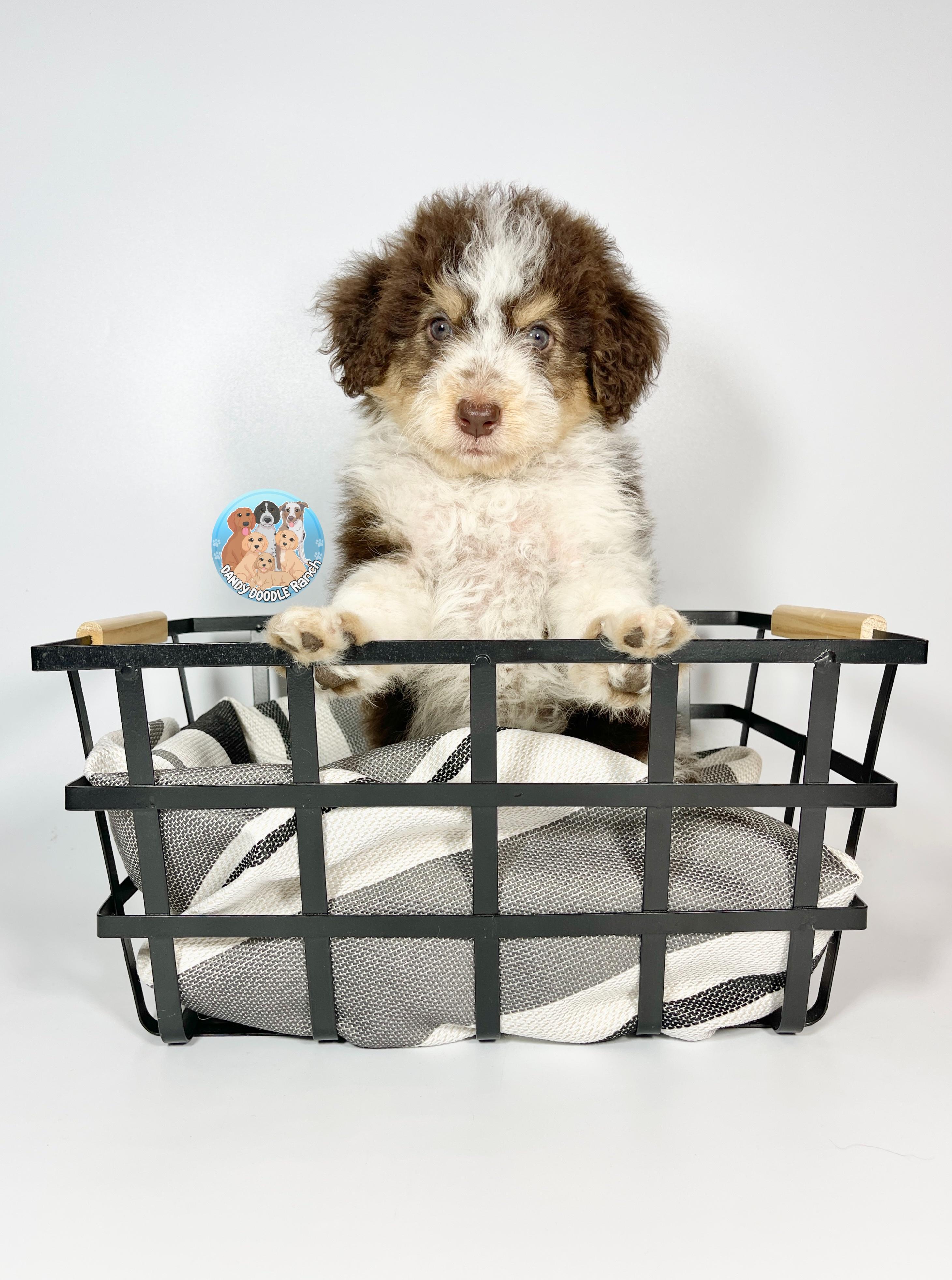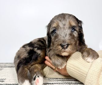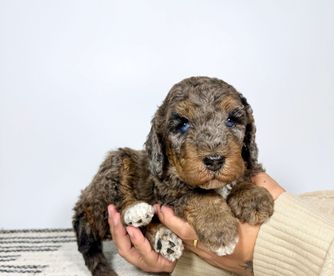 Our Double Doodle puppies include tri-color, merle, dark golden, red, phantom, parti, chocolate, brown, and apricot. Bernedoodle puppies include tri-color, phantom, blue merle, and merle. Aussiedoodle puppies include brown and white, blue merle, red merle, red phantom, and red tri-color. Goldendoodle puppies include cream, apricot, red, chocolate, black, phantom, merle, and parti. Colors will vary depending on the parent dogs.