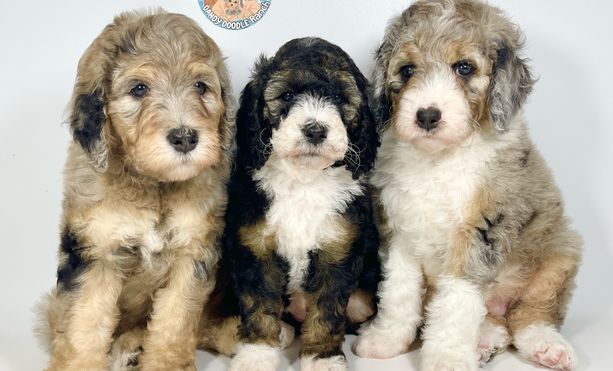 Our Double Doodle puppies include miniature and medium sizes. Bernedoodle puppies include mini, medium, and standard sizes. Aussiedoodle puppies include mini and standard sizes. Goldendoodle puppies include petite, miniature, medium, and standard sizes. Sizes will vary depending on the parent dogs.