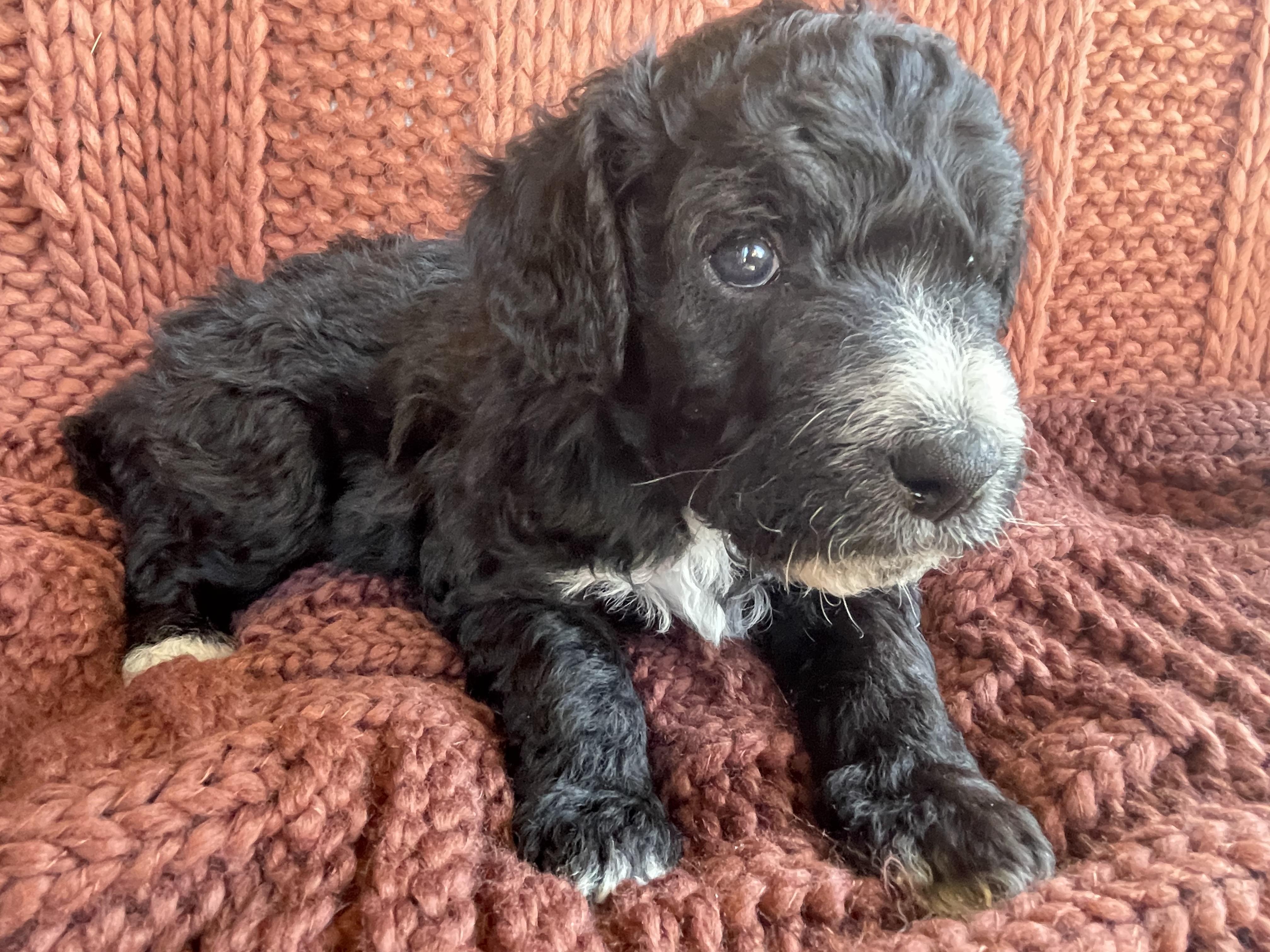 Our Aussiedoodle puppies include brown and white, blue merle, black and white, and black tri-color. Bernedoodle puppies include chocolate merle, black and white, tri-color, phantom, and merle. Colors will vary depending on the parent dogs.
