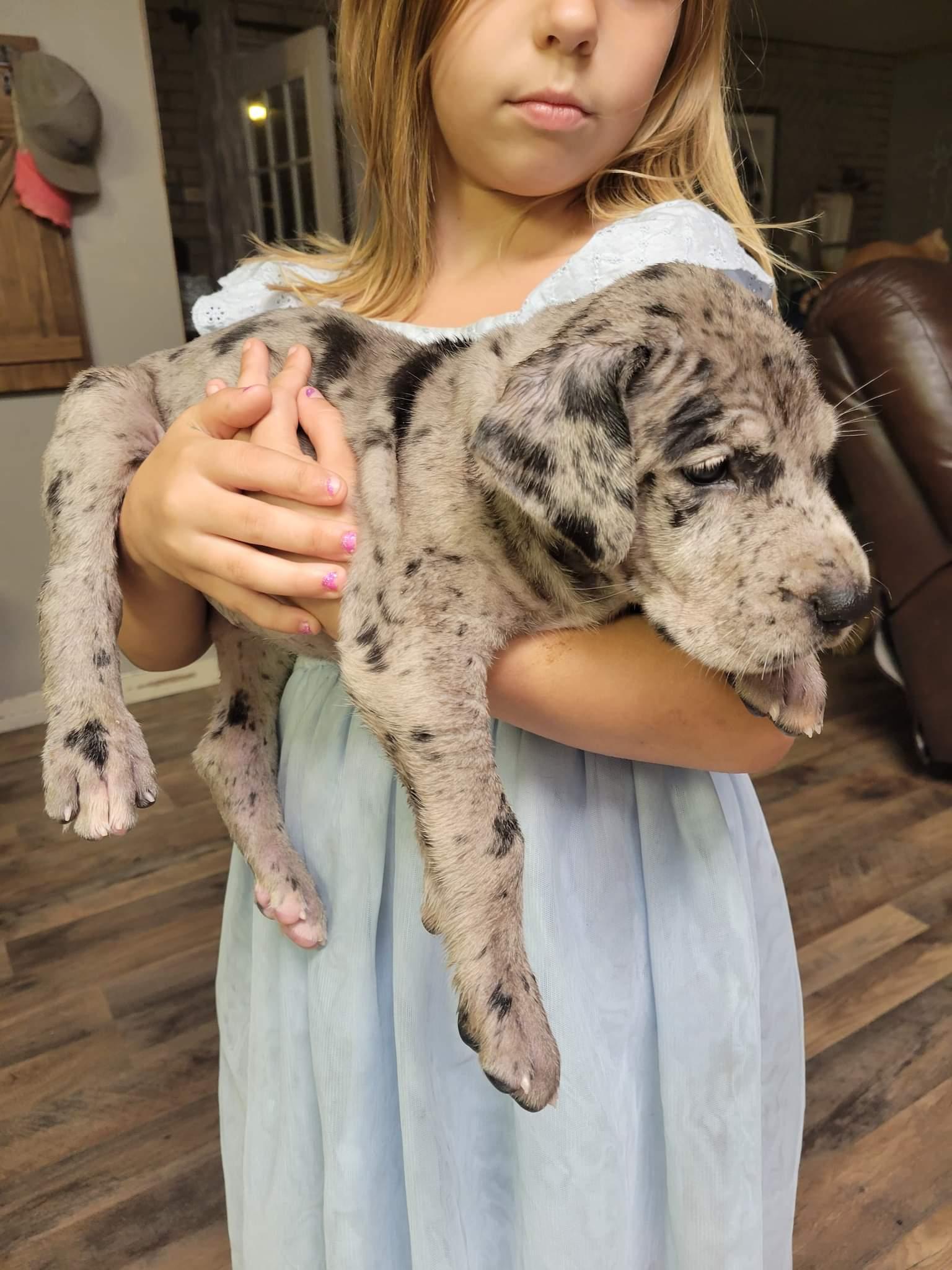 I'm Talan J., the breeder behind Danes Done Right located in Pollock, LA. I provide my puppies with a safe, clean, and enriching environment where they can grow and learn about the world until they are ready to venture out and experience life with their forever families! I want to provide your family with a top quality dog, big or small!