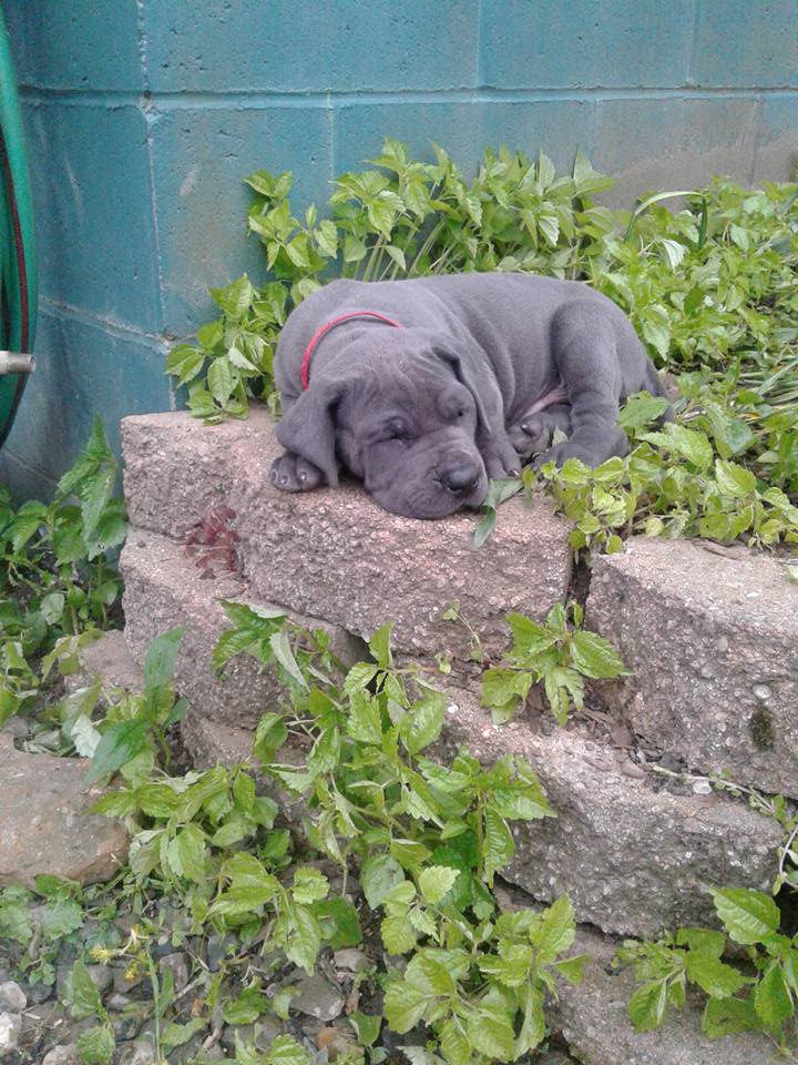 Our puppies include blue and black. Colors will vary depending on the parent dogs.