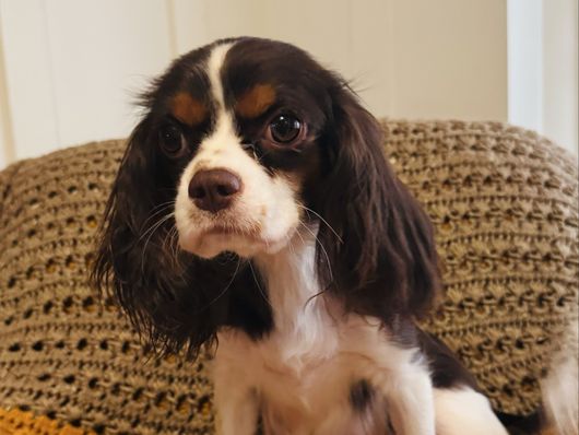 Layla is a very sweet cavalier. She loves going on walks and snuggling with the kids. She is always a friend when you need a lap buddy. She loves treats, belly rubs, and playing with her friend Luna.
