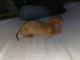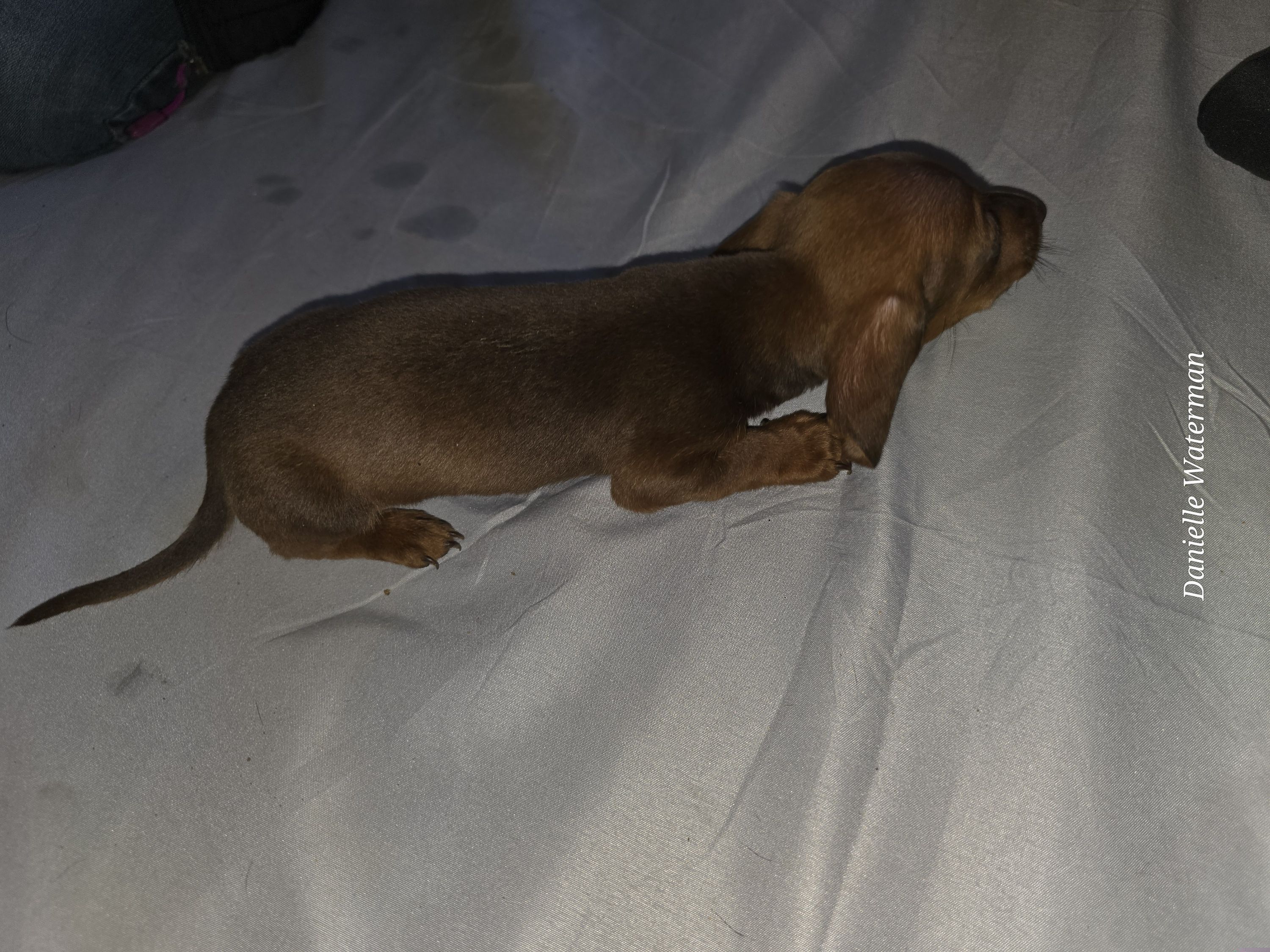 Penny is a female Dachshund over 2 years old. Carefully selected as a great representative of her breed, Danielle decided to make her part of their program. Danielle has passed Good Dog’s screening process, which involved a review of their breeding practices, environment, and the mental and physical health of their dogs.