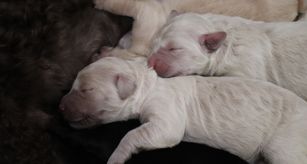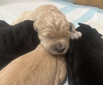 Our puppies include cream and black. Colors will vary depending on the parent dogs.