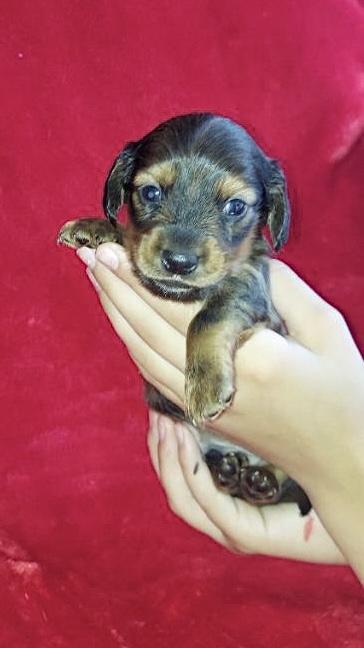 Gypsy is a female Dachshund. Carefully selected as a great representative of her breed, Danielle decided to make her part of their program. Danielle has passed Good Dog’s screening process, which involved a review of their breeding practices, environment, and the mental and physical health of their dogs.