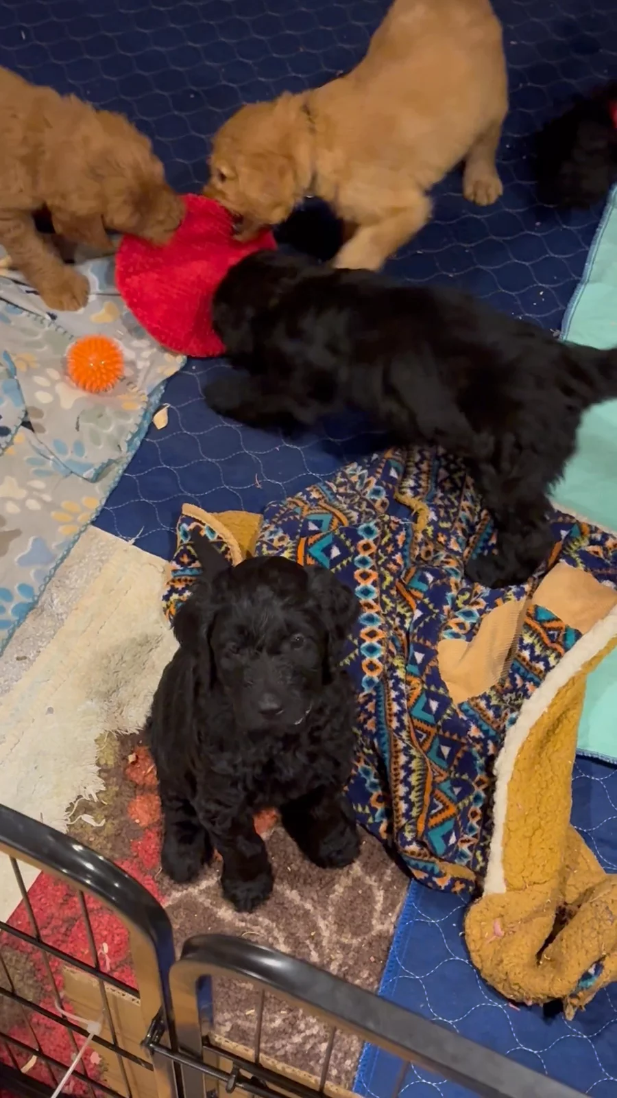 Our puppies include cream, red, chocolate, and black. Colors will vary depending on the parent dogs.