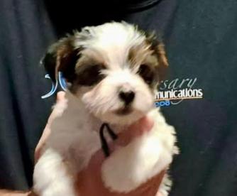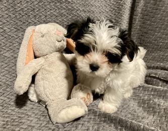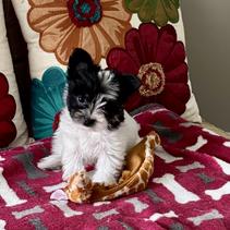 Our Morkie puppies include black, chocolate, piebald, black & tan tri-color, blue and gold, black and gold, and black and tan. Yorkipoo puppies include tri-color, parti, tan, red, gray, silver, chocolate, blue and gold, blue and tan, black, black and gold, and black and tan. Yorkshire Terrier puppies include parti and blue and gold. Colors will vary depending on the parent dogs.