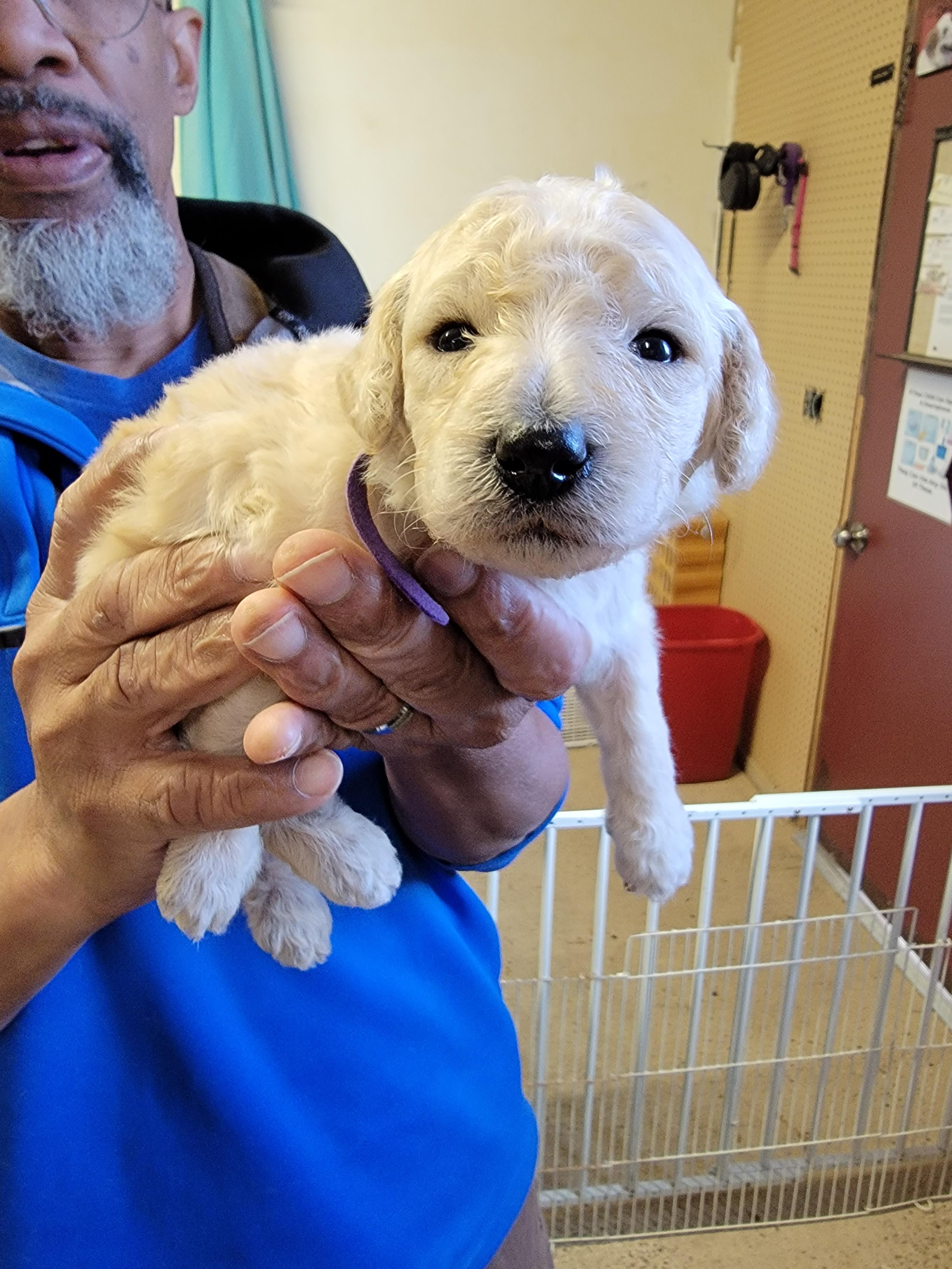 Sprocket is a male Goldendoodle. Carefully selected as a great representative of his breed, Daphne decided to make him part of their program. Daphne has passed Good Dog’s screening process, which involved a review of their breeding practices, environment, and the mental and physical health of their dogs.