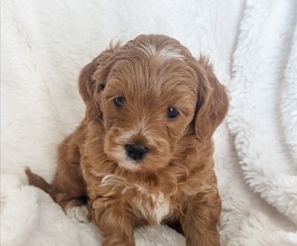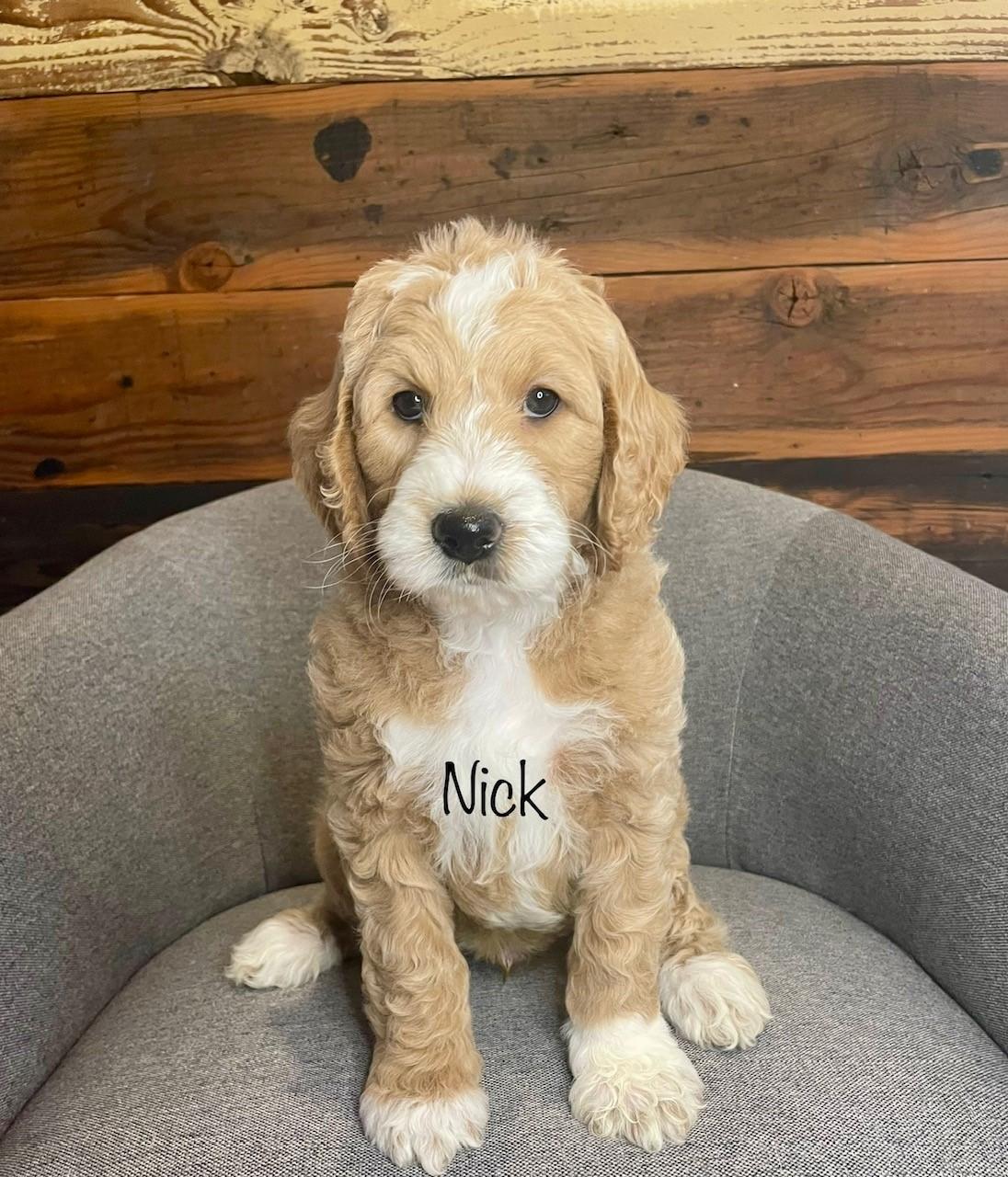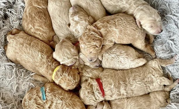 Our Goldendoodle puppies include apricot, red, and parti. Poodle puppies are red. Colors will vary depending on the parent dogs.