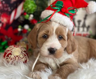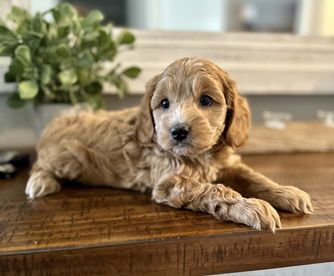 Our Cockapoo puppies include merle, red and white, black, buff, brown and white, brown, black and white, black and tan, golden, and red. Australian Labradoodle puppies include caramel, caramel red, red, apricot, cream, chocolate, cafe, and black. Colors will vary depending on the parent dogs.