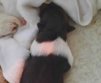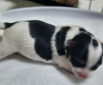 Raya is a beautiful black & tan parti with big beautiful eyes and the sweetestpersonality. She is AKC and genetic tested with Optimal Selections.
