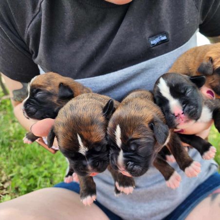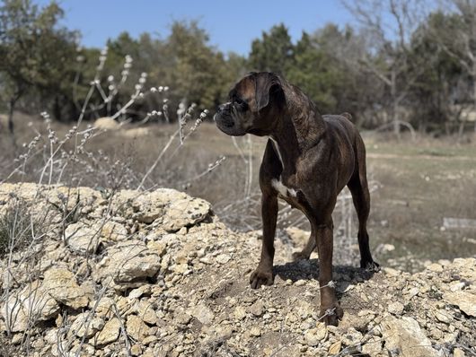 I'm Jo S., the breeder behind Dark Horse Boxers located in Briggs, TX. Our mission is to provide Boxers for show, pet, working, and sport purposes. All of our dogs are AKC and UKC registered, health tested and bred for temperament and betterment of the breed. We are a small kennel, and only have a few litters per year.