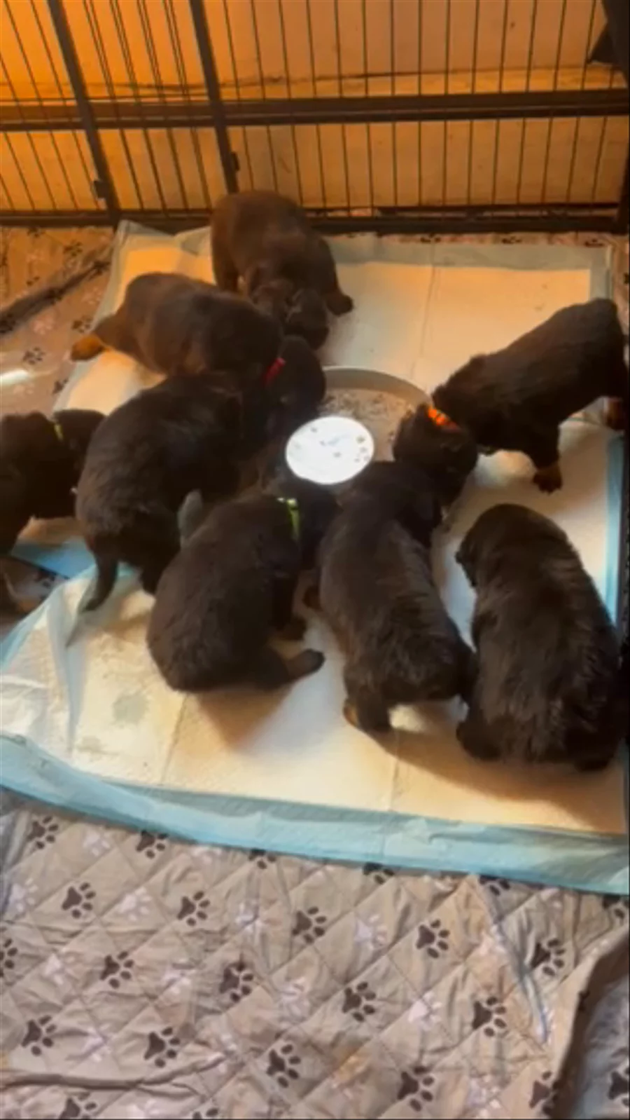 Our puppies are black and mahogany. Colors will vary depending on the parent dogs.