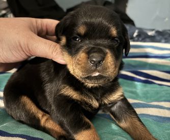 I'm Diana D., the breeder behind Dark Storm Kennels located in Detroit, MI. Our dogs are our beloved companions. We care deeply about this breed and are proud to be responsible Rottweiler breeders. Our puppies are raised with love in our home, and we strive to help each one grow up with confidence so they are ready to thrive with their new families. They are affectionate, intelligent, and cute as can be!