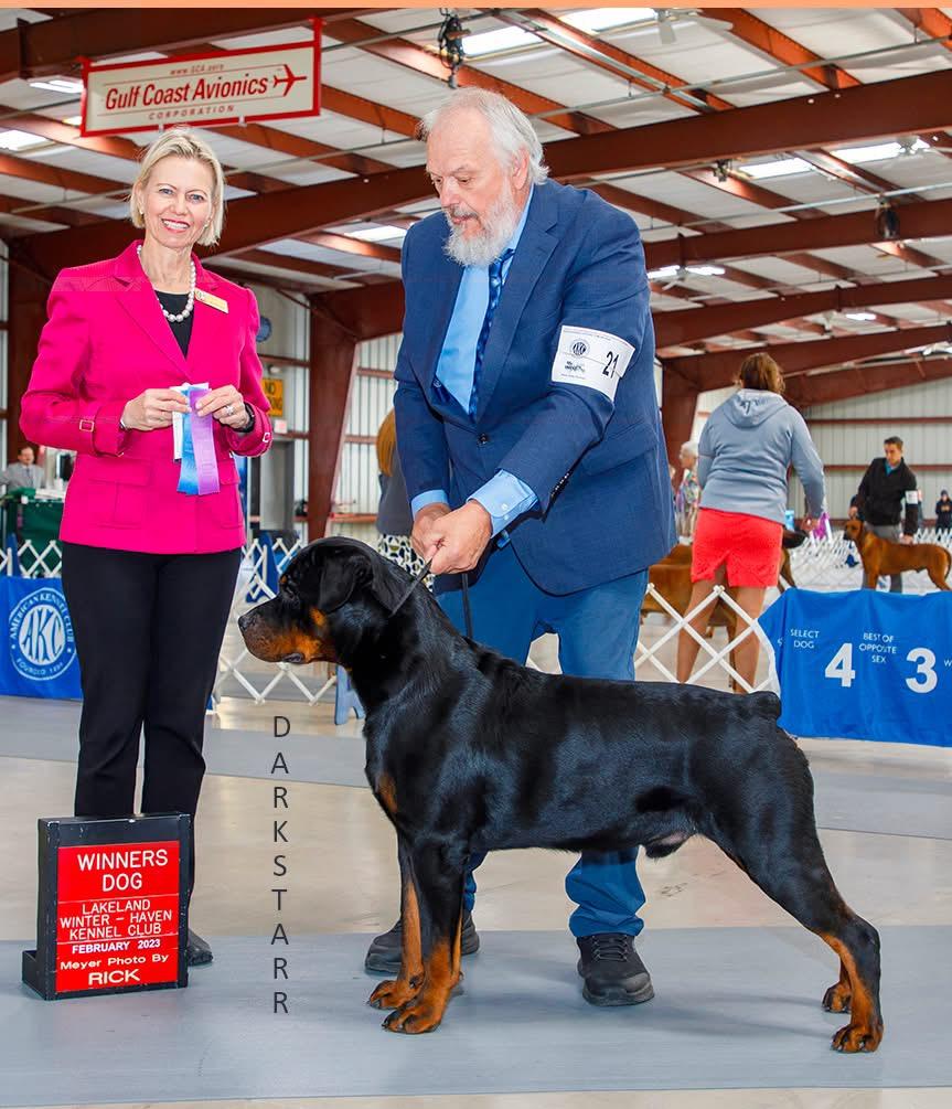 Howard has been shown. He needs one major win to finish his championship. Howard is a strong dog in body and mind. He is one of the most loyal and intelligent dog we have had in 50 years of competition and breeding. He is what a real Rottweiler should be. Howard comes down from a famous German breeding that produced it all, three ADRK Klub Sieger/Siegerin. Germany’s biggest show of the year. Three siblings that won top honors at the largest & most prestigious Rottweiler shows in the world for conformation and working with only German Judges. Having 3 siblings accomplishing these honors are unmatched. Howard is bred on these dogs.