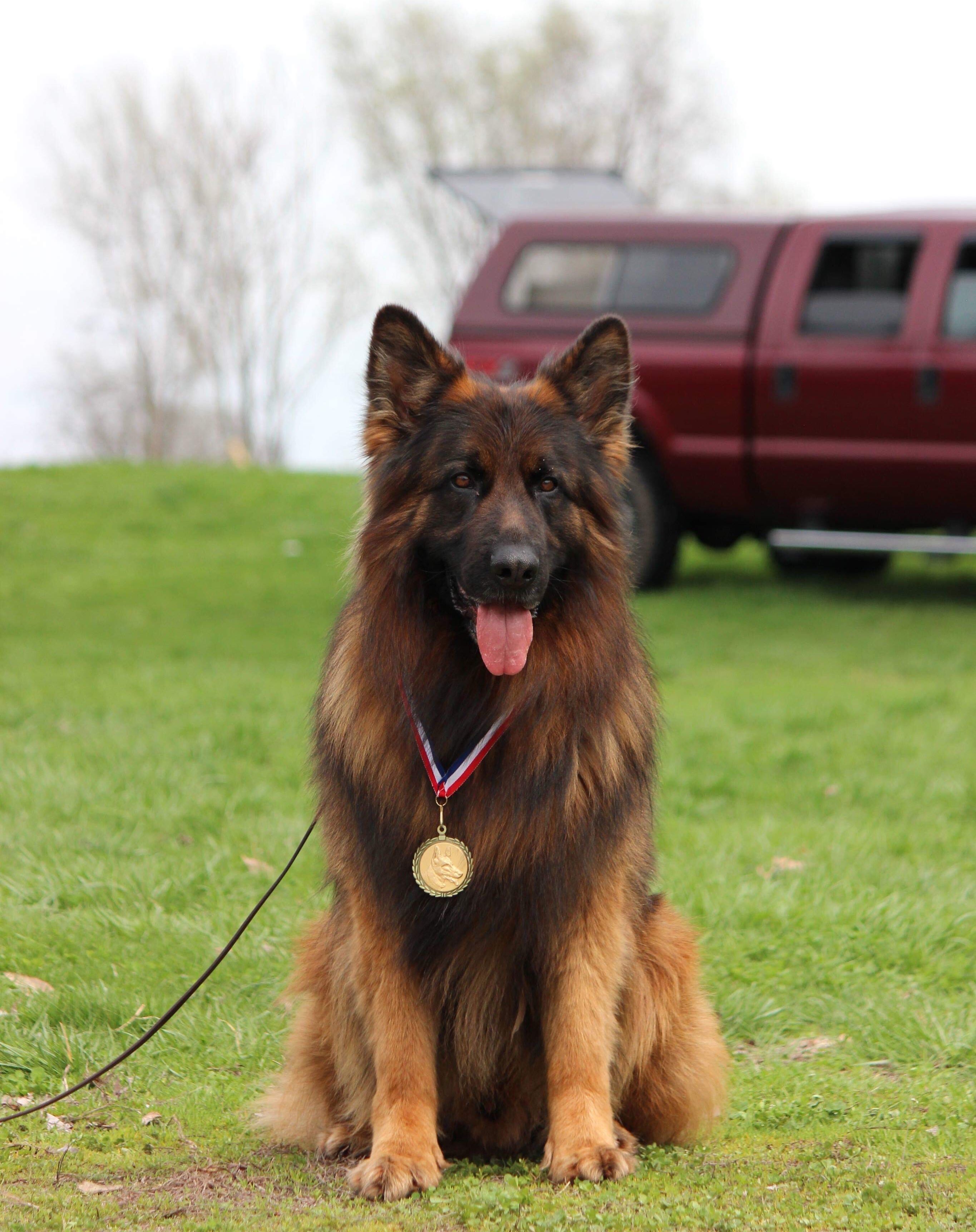 For my birthday, my parents gave me a little puppy named Trinity who was born May 20, 2012. Together we learned how to train and show! We conquered the AKC ring in Obedience and Rally. We later participated in Schutzhund earning our BH. She is now retired after giving me 4 gorgeous kids to carry on her genetics. Trinity is my heart and soul!