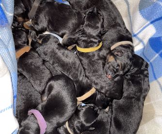 Our puppies are black and red. Colors will vary depending on the parent dogs.