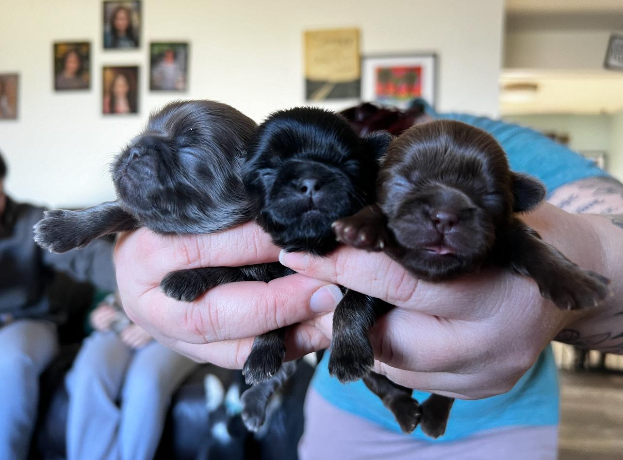 Puppy prices include a $200 non-refundable deposit and between $1,000 - $1,300 final payment, before taxes & fees.