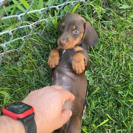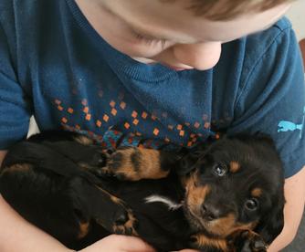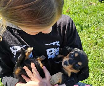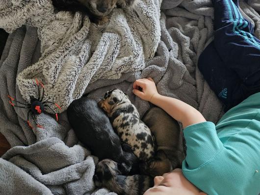 I'm Nicole B., the breeder behind Darling Doxies located in Elk River, MN. Every puppy we raise is adored as part of our family from birth. Our puppies will complete your home, your family, and your heart! Our puppies are raised with love in our home, and we strive to help each one grow up with confidence so they are ready to thrive with their new families. They are affectionate, intelligent, and cute as can be!
