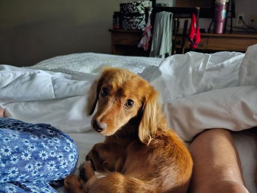 Virgil is a male Dachshund. Carefully selected as a great representative of his breed, Nicole decided to make him part of their program. Nicole has passed Good Dog’s screening process, which involved a review of their breeding practices, environment, and the mental and physical health of their dogs.