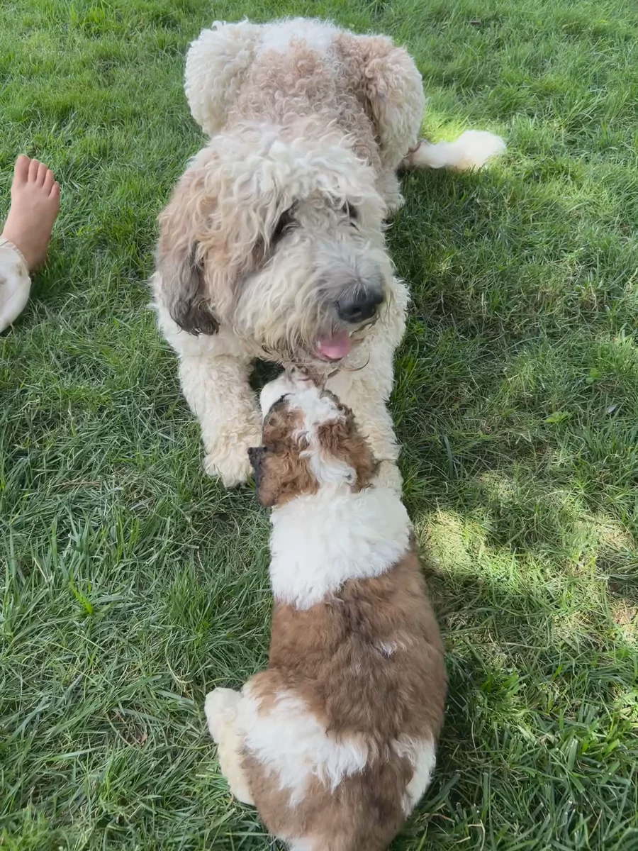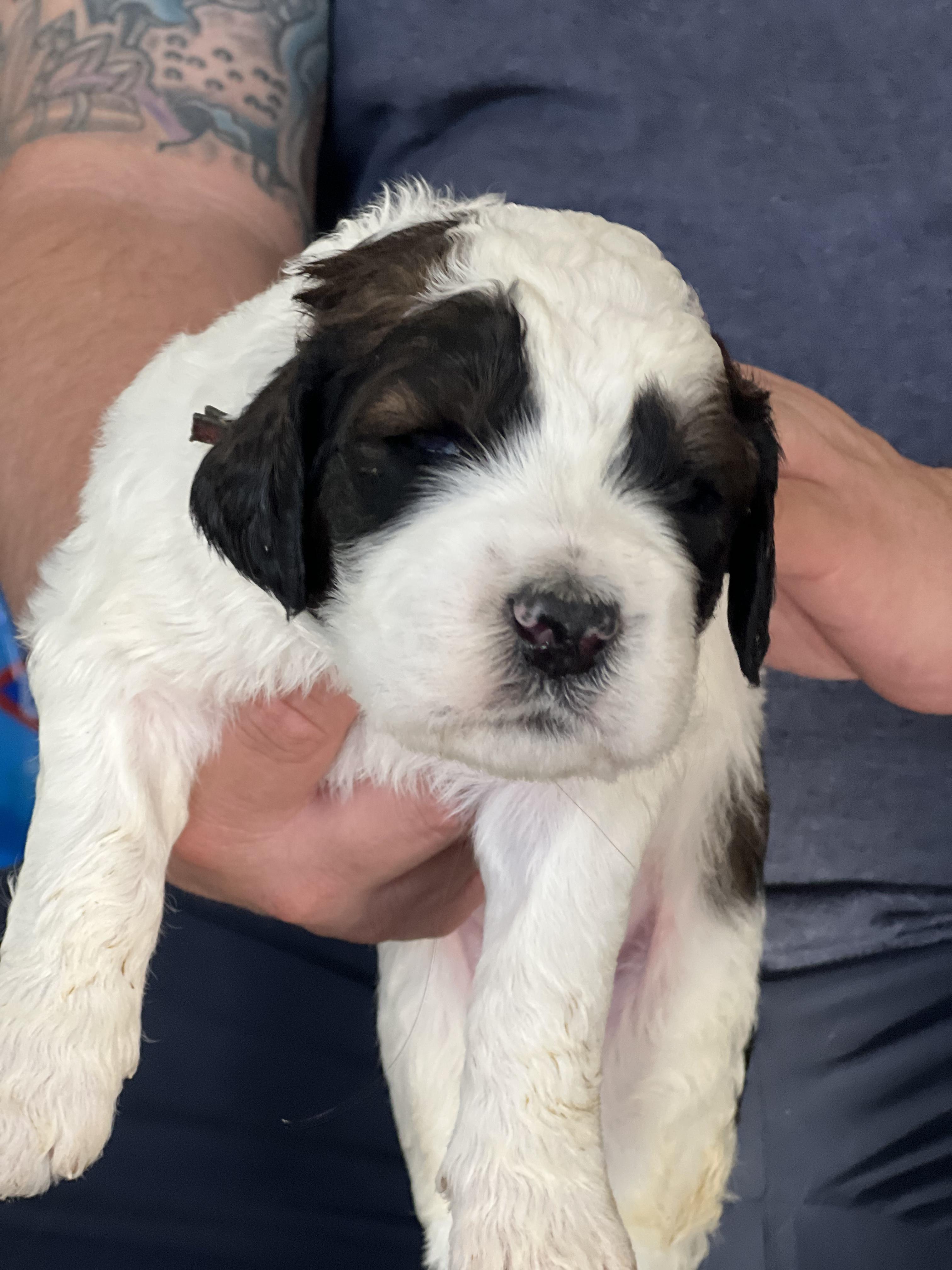 Meet our sweet mama! She’s a gentle, loving Saint Berdoodle with the calm heart of a Saint Bernard and the smarts of a Poodle. She just welcomed a beautiful litter and is already proving to be the most nurturing, attentive mama. 💕