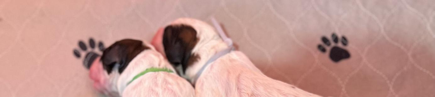 Our puppies include rust and white, brindle and white, and brown and white. Colors will vary depending on the parent dogs.